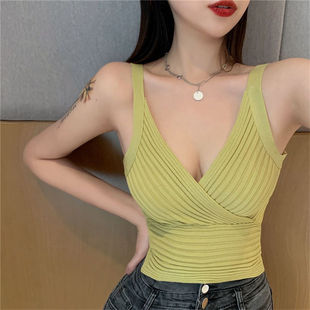 冰丝小吊带无袖背心女夏外穿内搭宽松韩版短款v领针织打底衫上衣