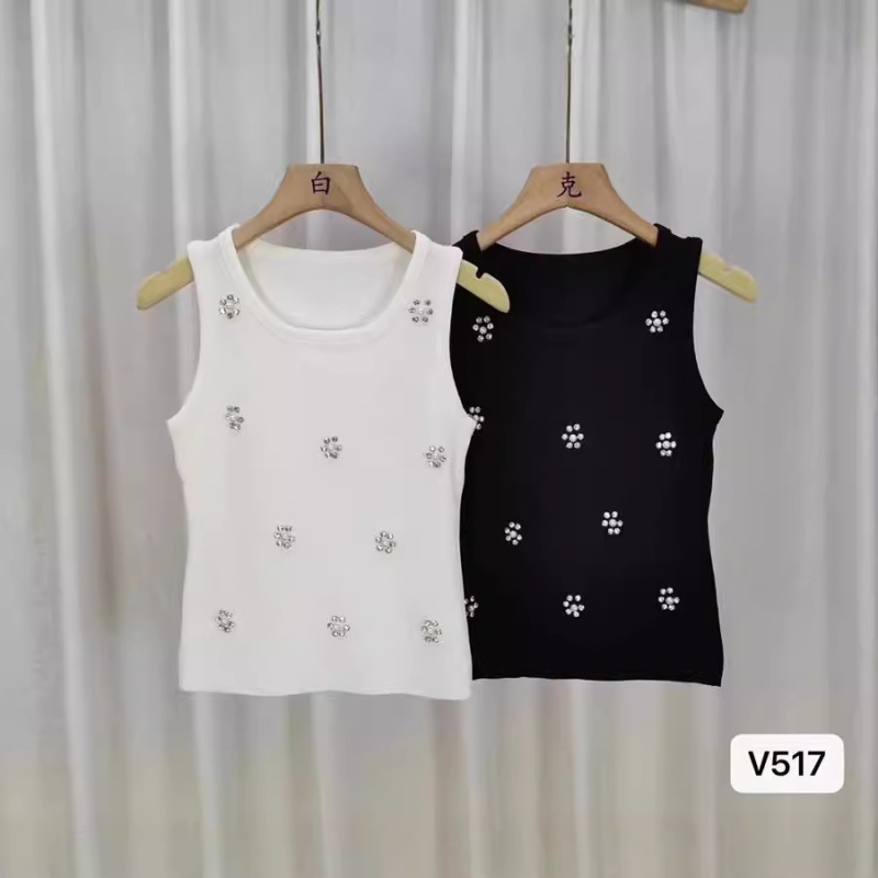 2024年夏季新款洋气减龄U领重工钉珠百搭背心百搭短款上衣好看女