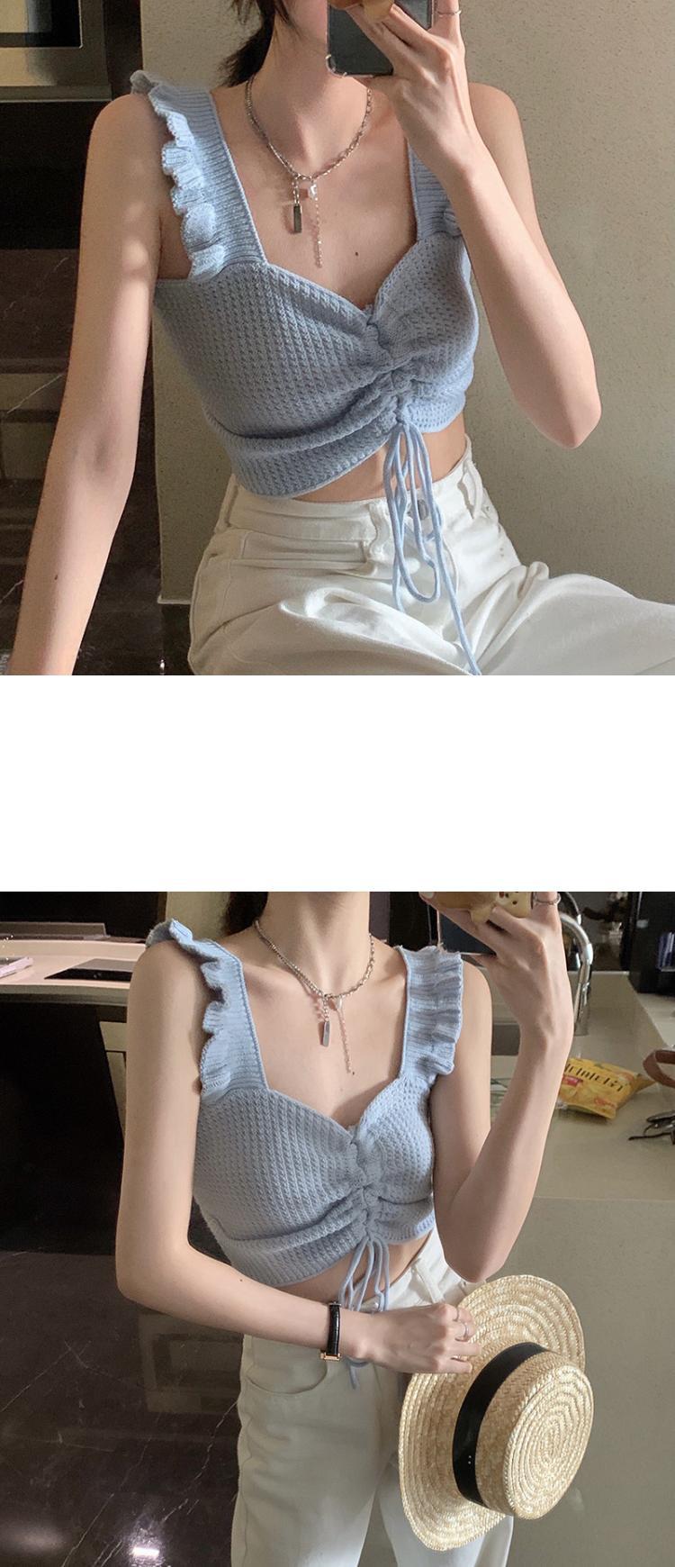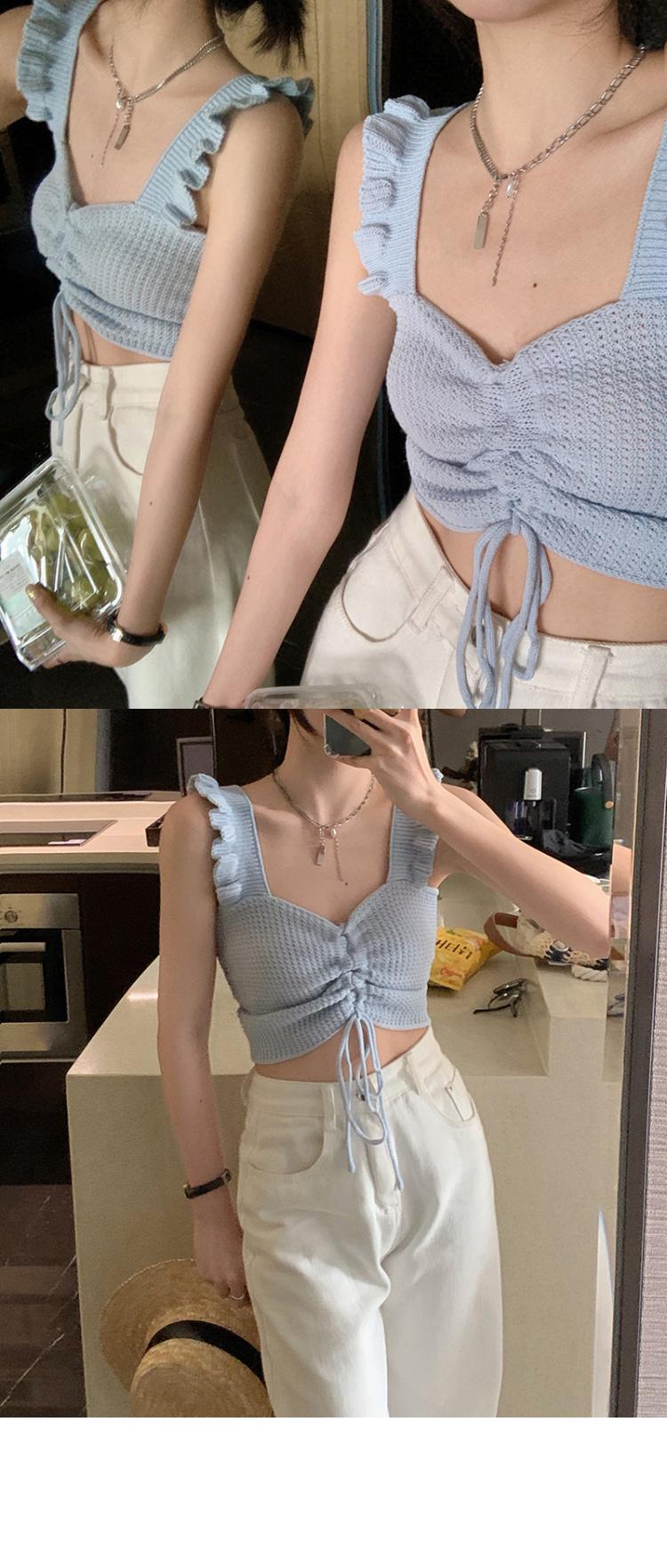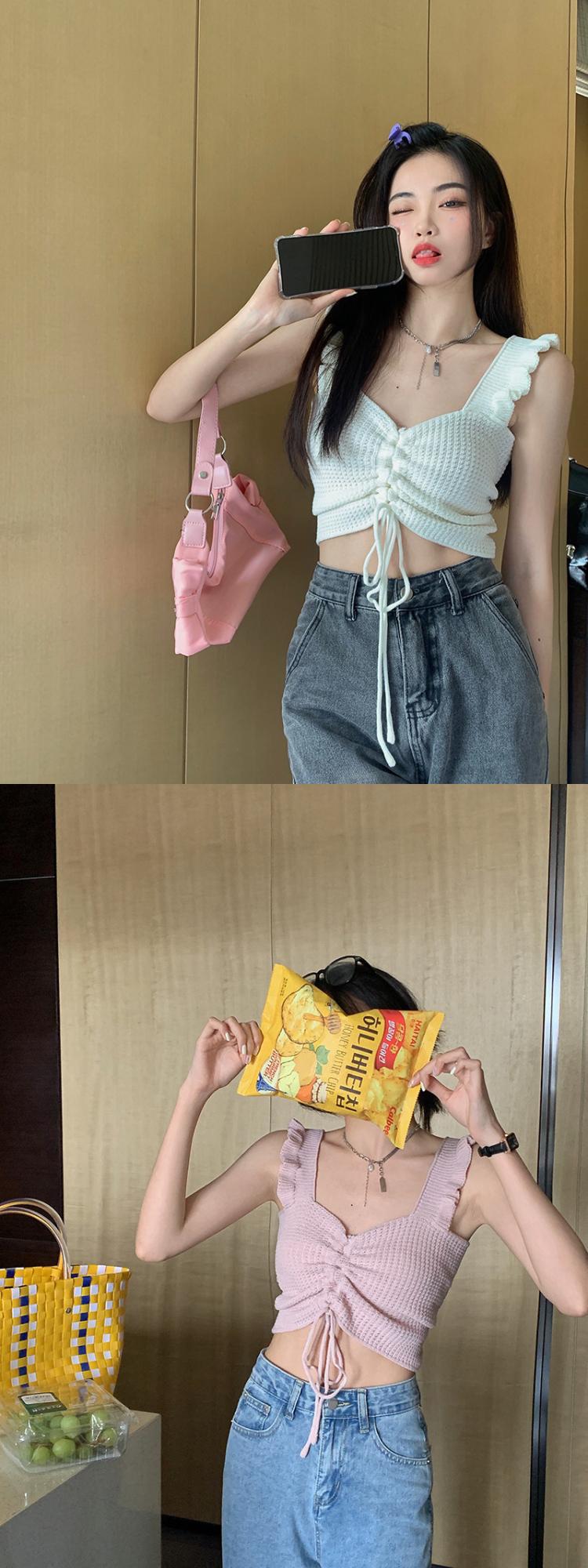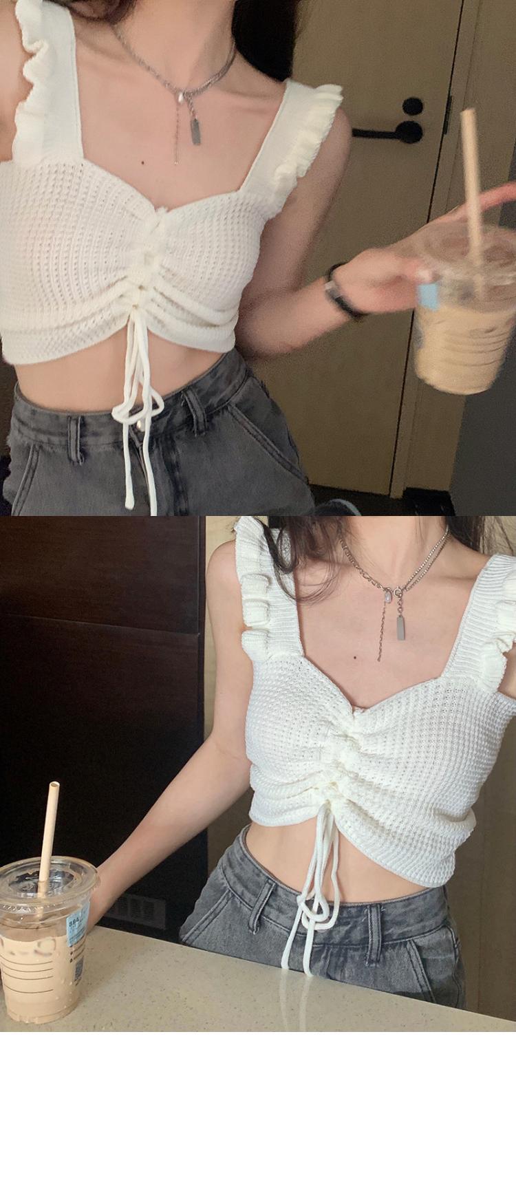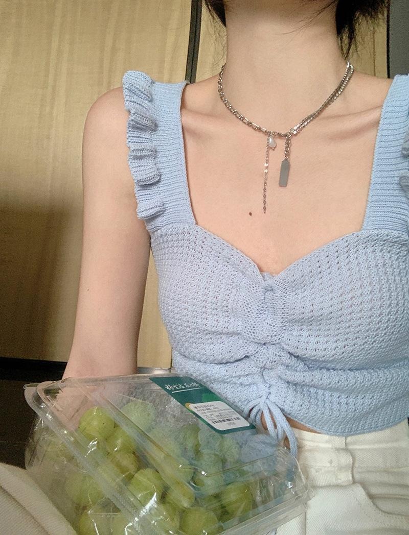 抽绳褶皱吊带辣妹木耳边V领设计感针织背心女外搭夏季小众感女装