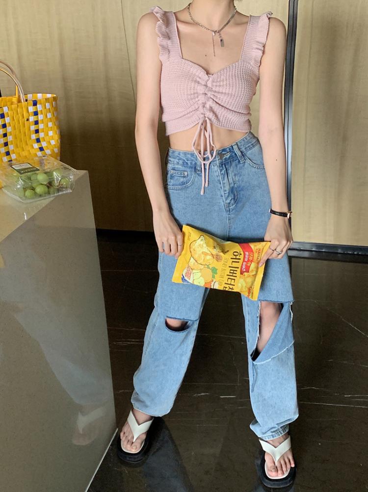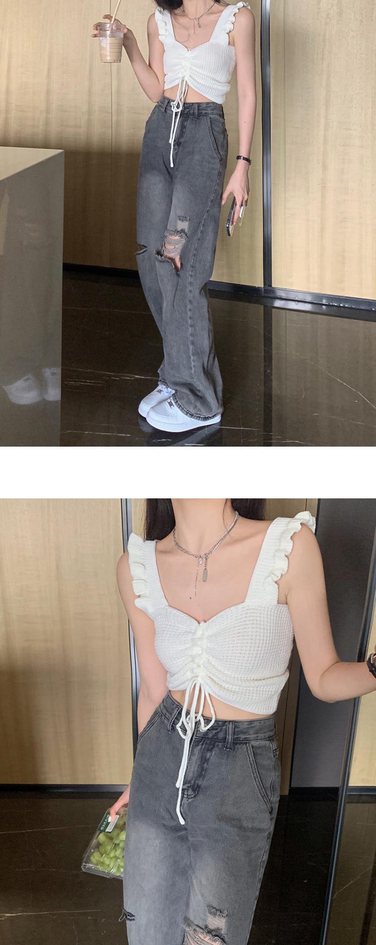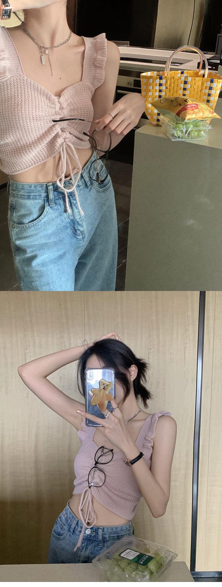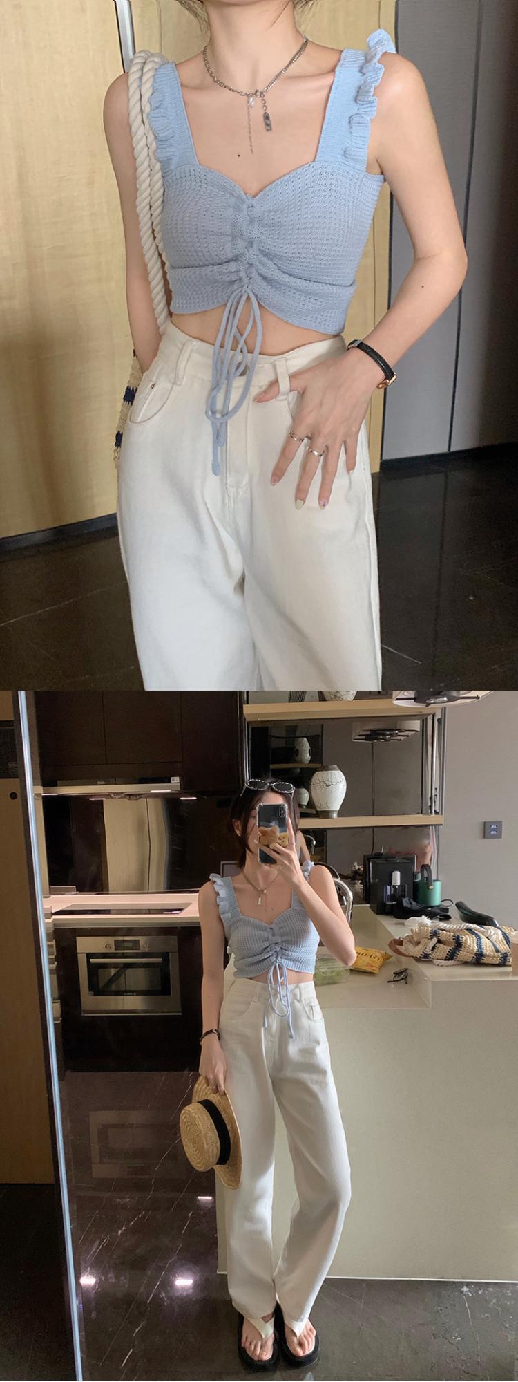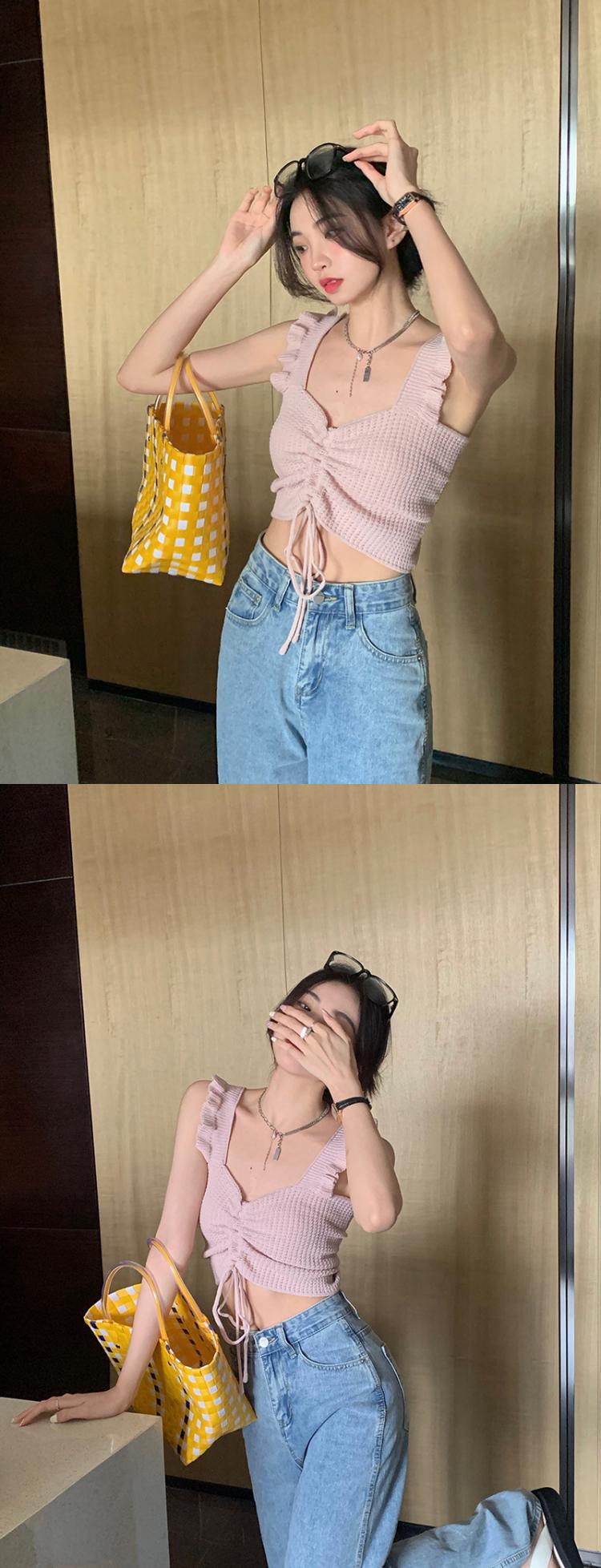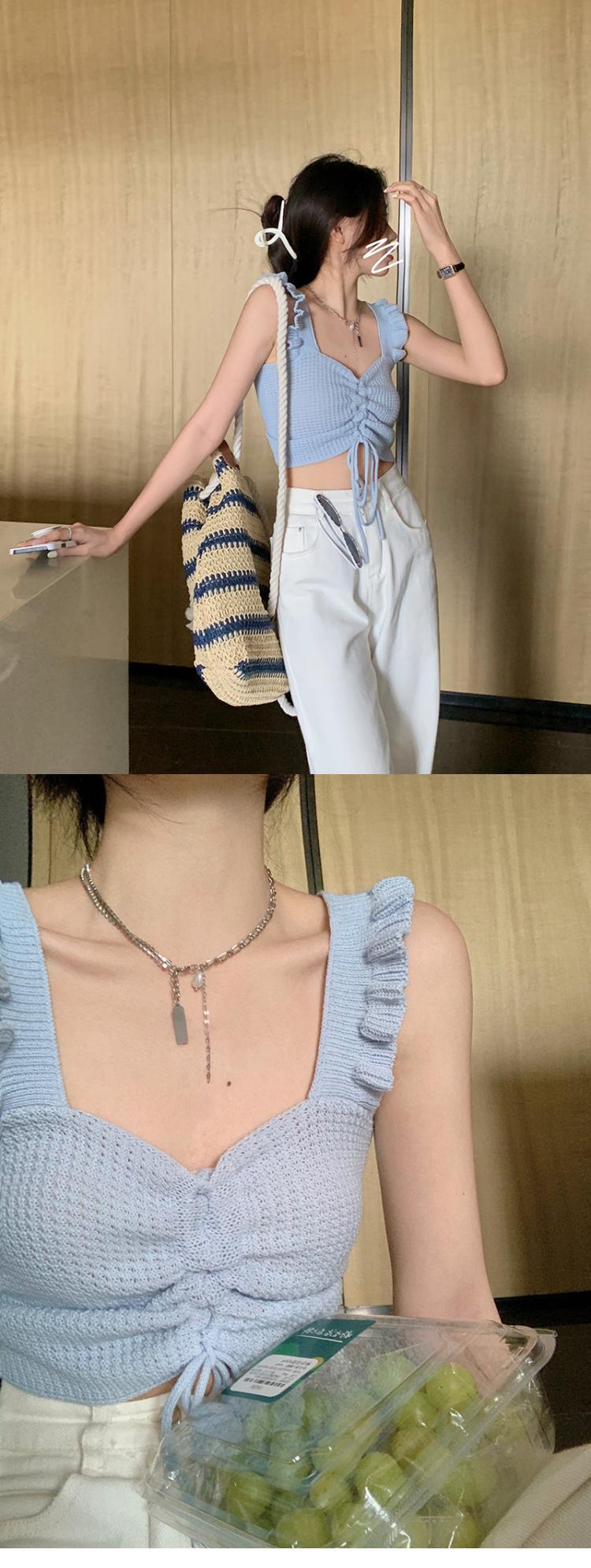 抽绳褶皱吊带辣妹木耳边V领设计感针织背心女外搭夏季小众感女装