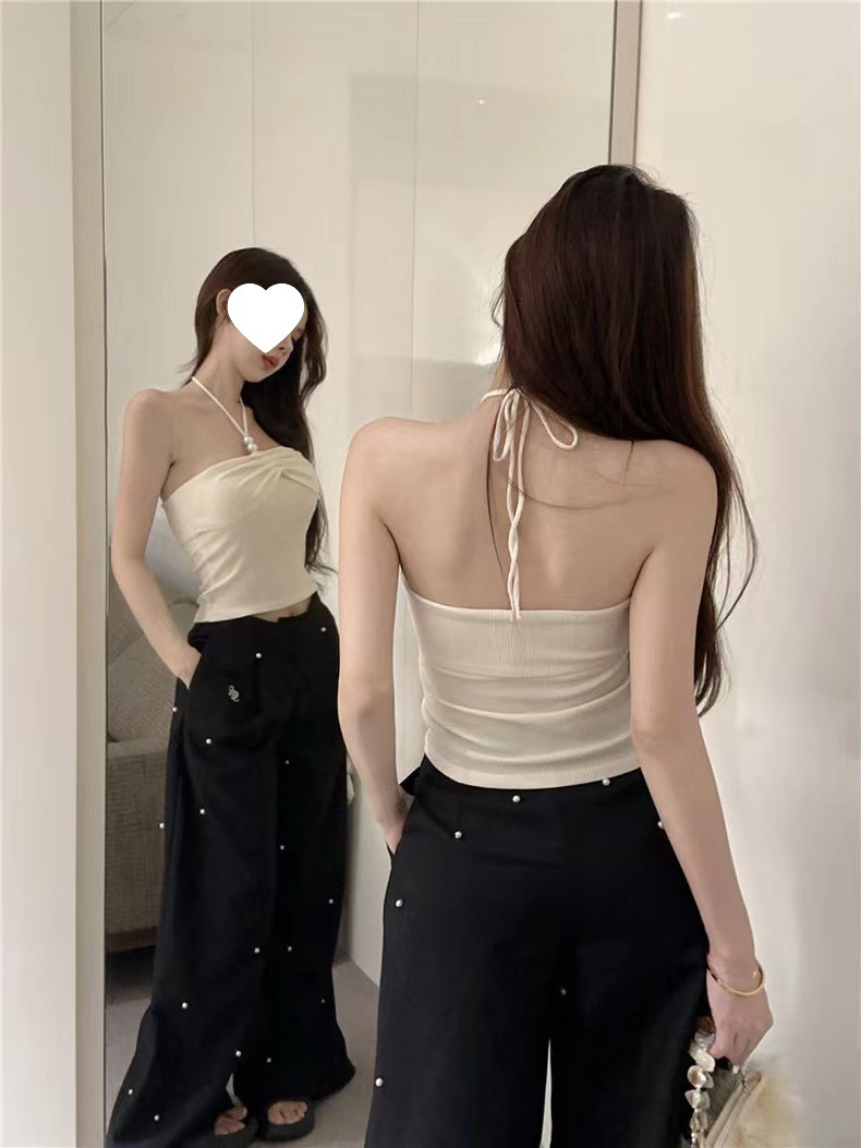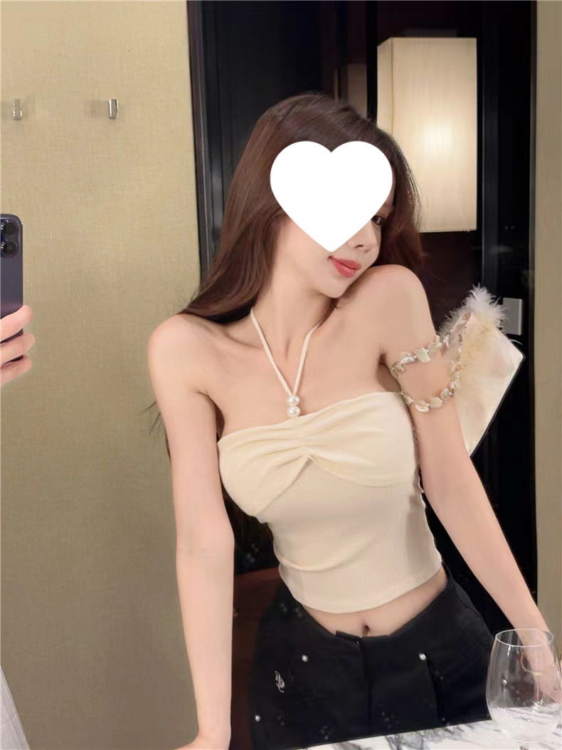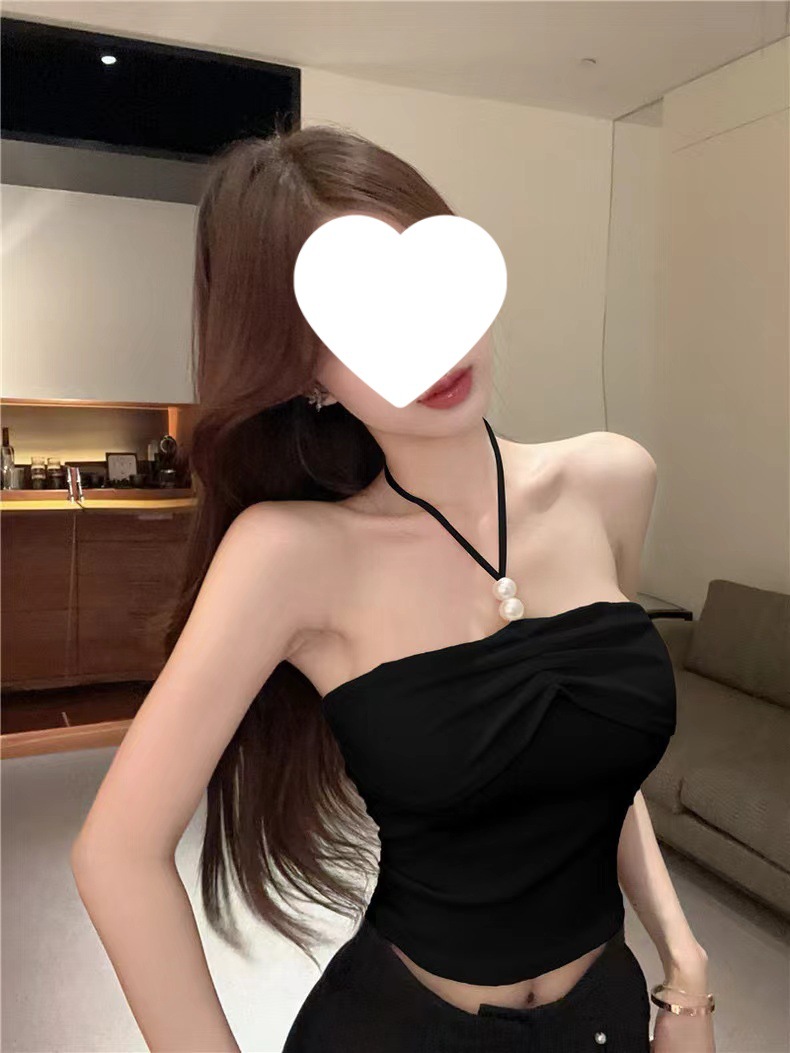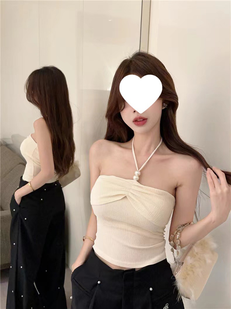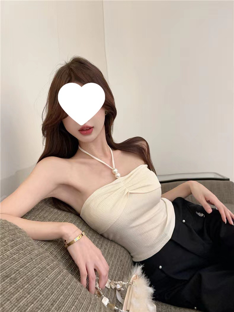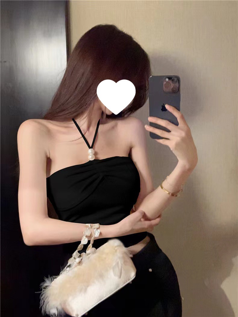 珍珠挂脖性感抹胸吊带背心女夏季修身显瘦设计感百搭打底衫上衣潮
