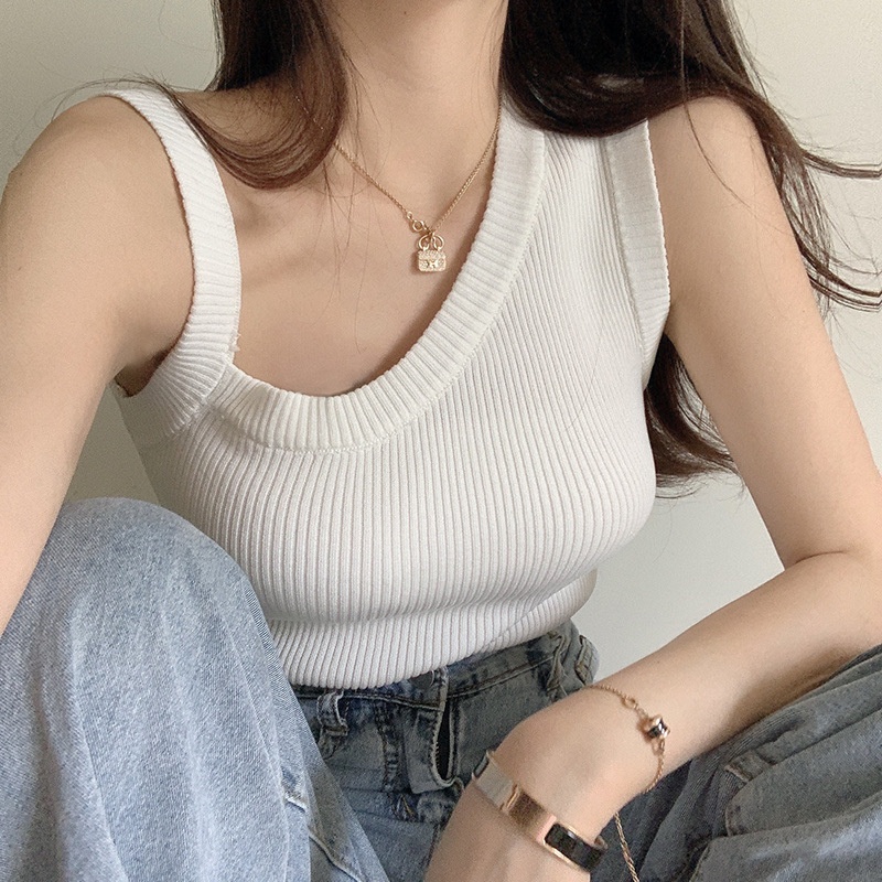 冰丝小吊带无袖背心女夏外穿内搭宽松韩版短款v领针织打底衫上衣