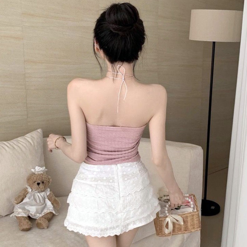 夏季蝴蝶结挂脖式针织小吊带内搭美背小众设计纯欲抹胸打底衫上衣