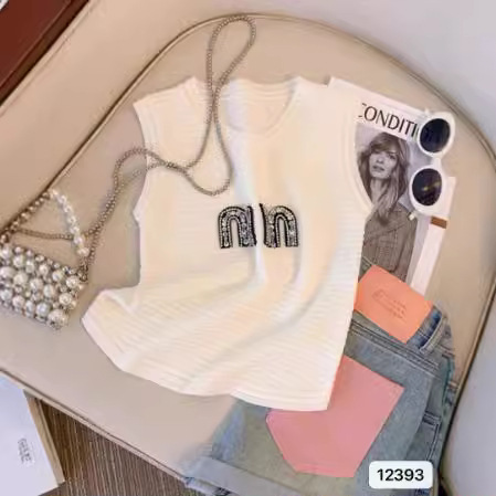 超火白色字母针织背心女夏感挖肩吊带衫网红轻奢显瘦无袖短款上衣