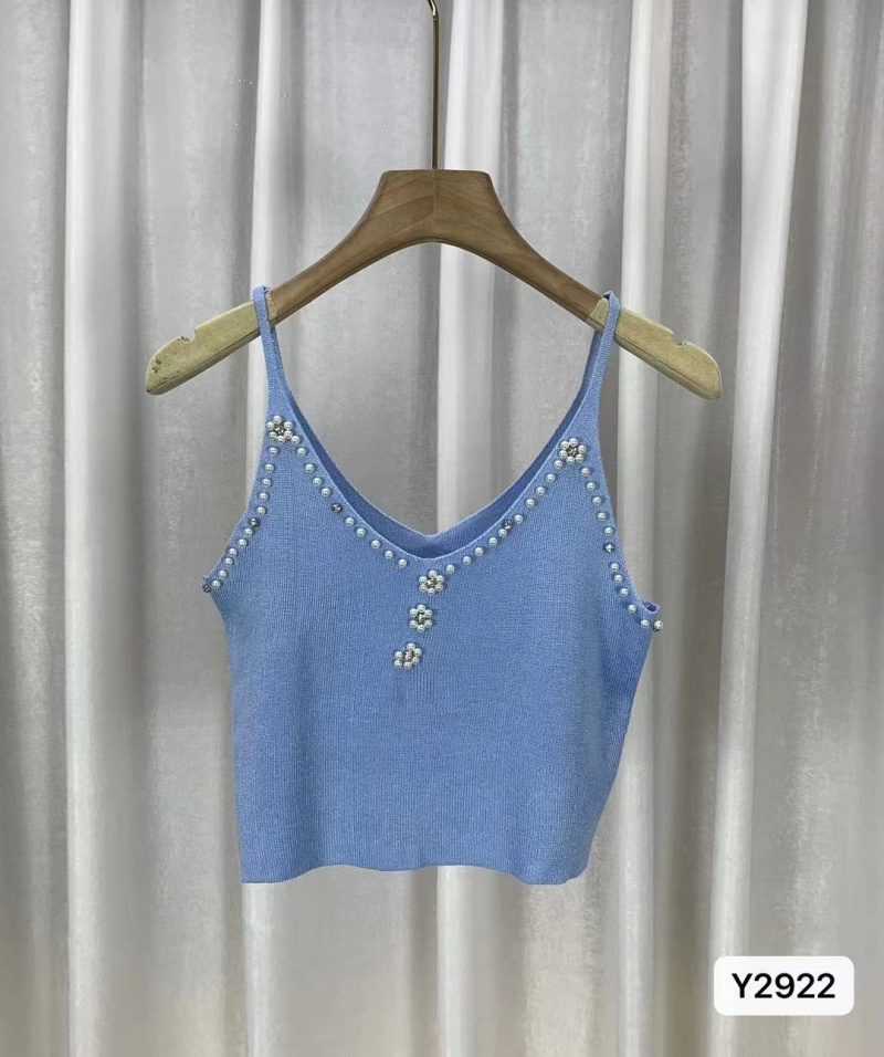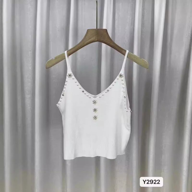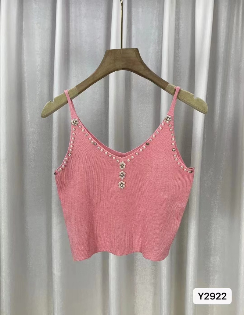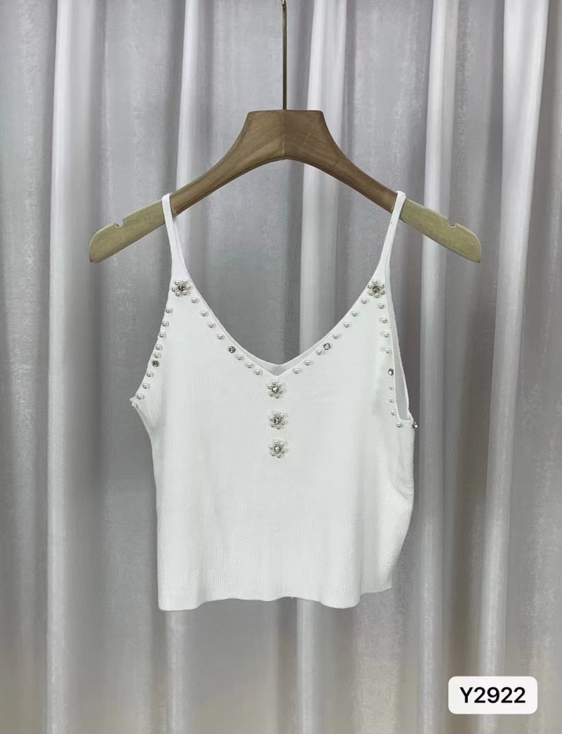 法式纯欲钉钻v领吊带背心女夏2024西装内搭针织无袖辣妹百搭上衣