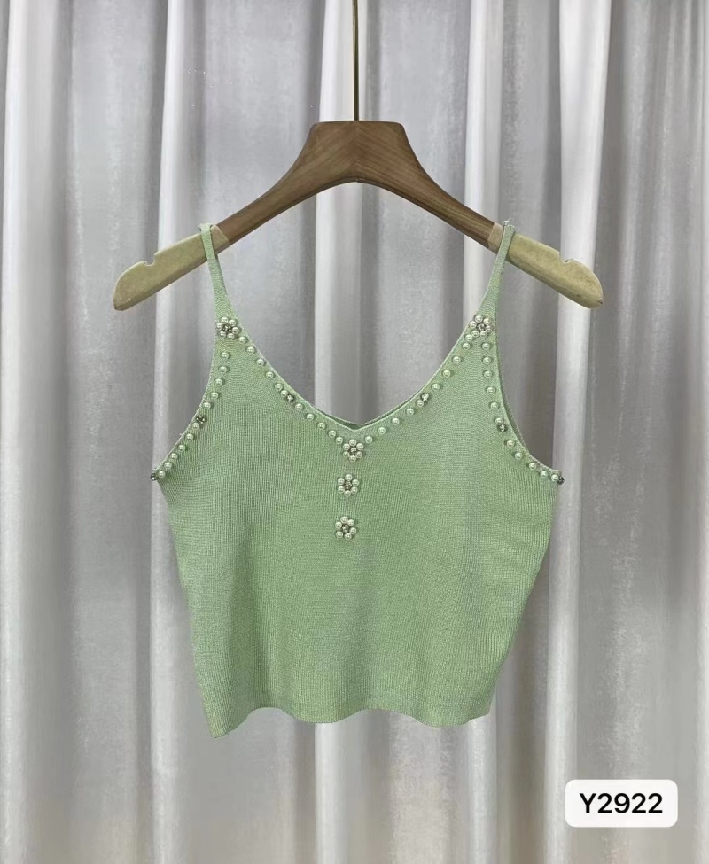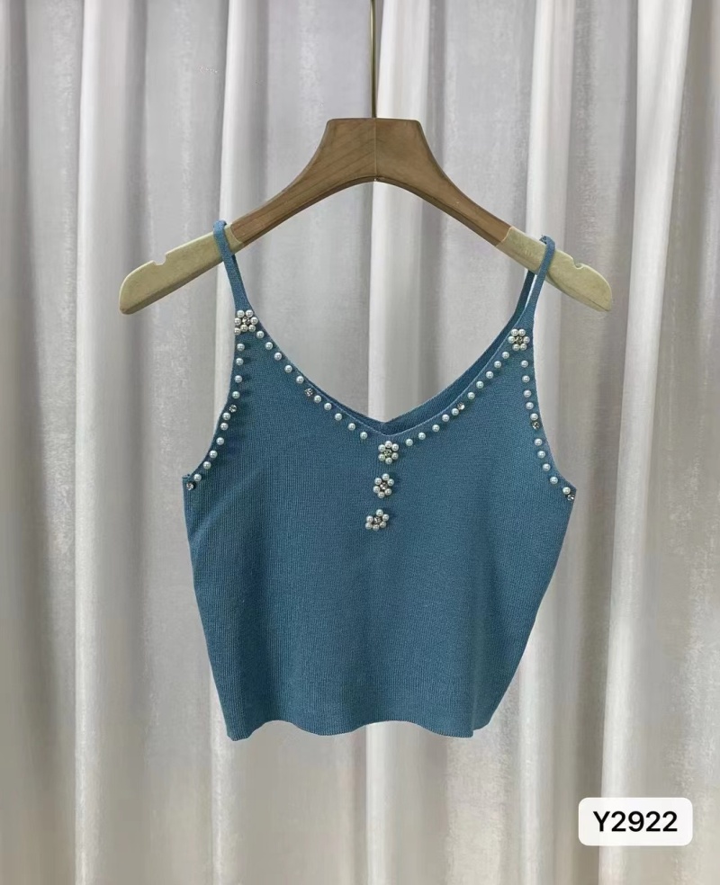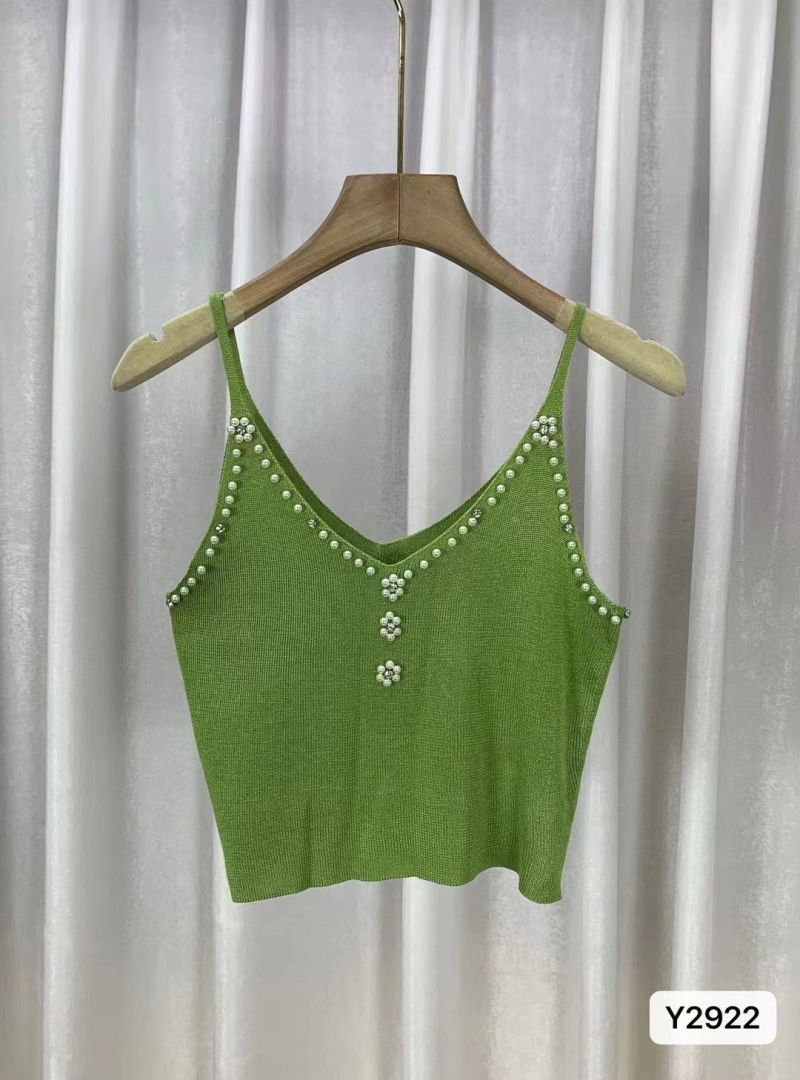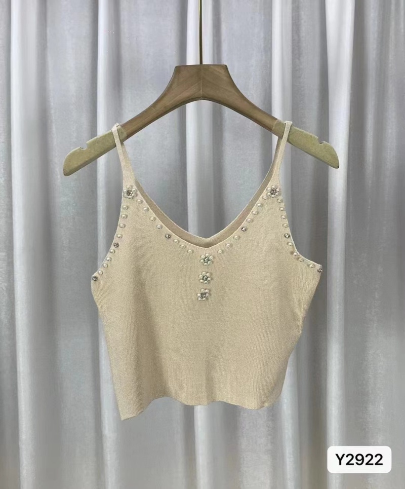 法式纯欲钉钻v领吊带背心女夏2024西装内搭针织无袖辣妹百搭上衣