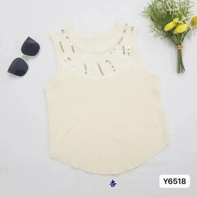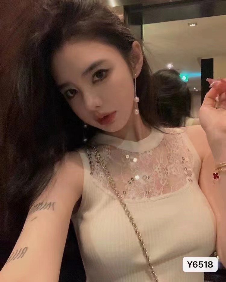2024年夏季新款高级感蕾丝网纱亮片拼接背心显瘦气质百搭修身上衣