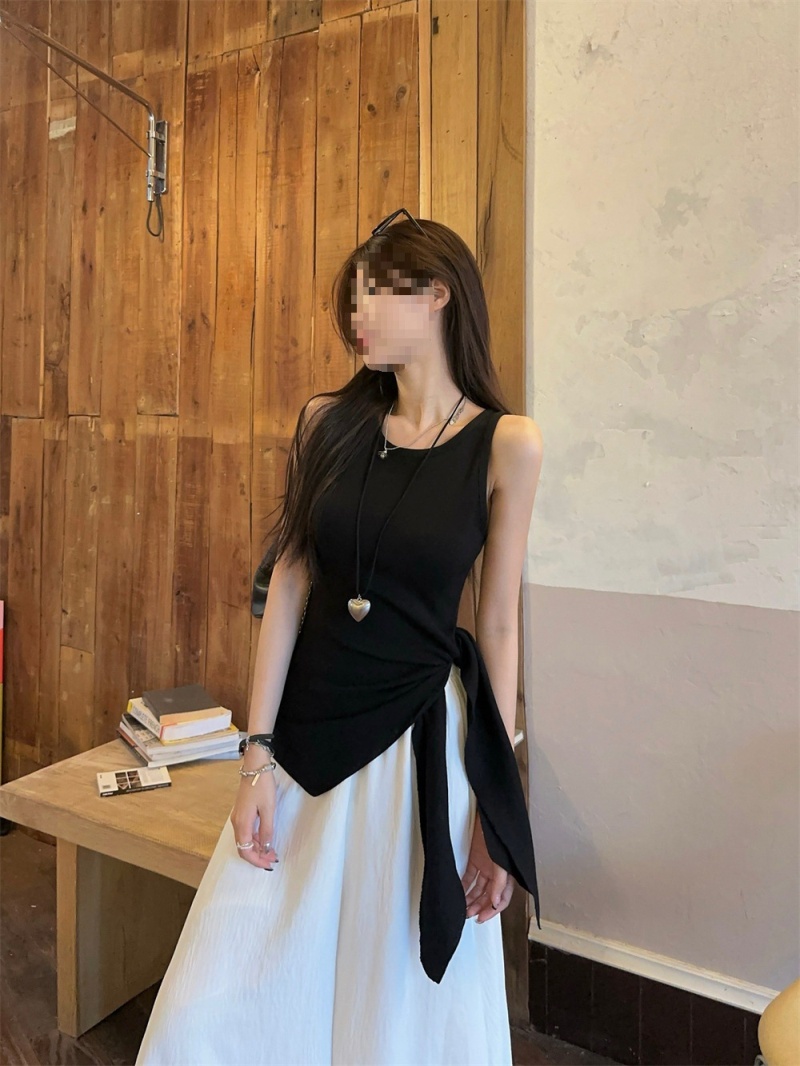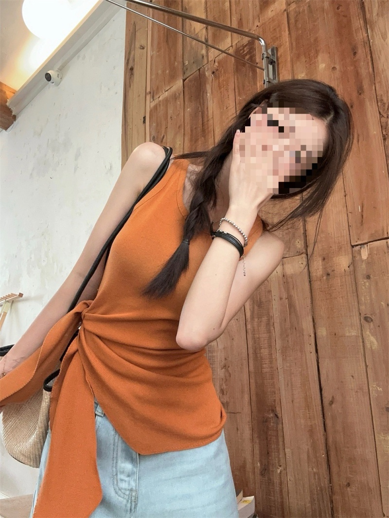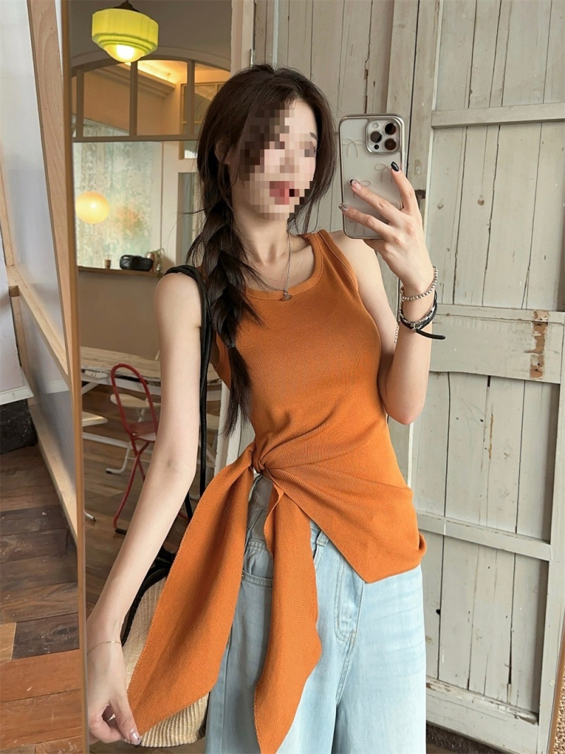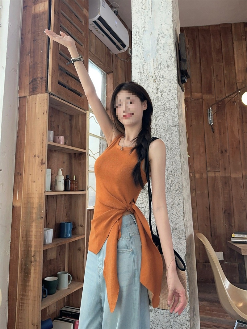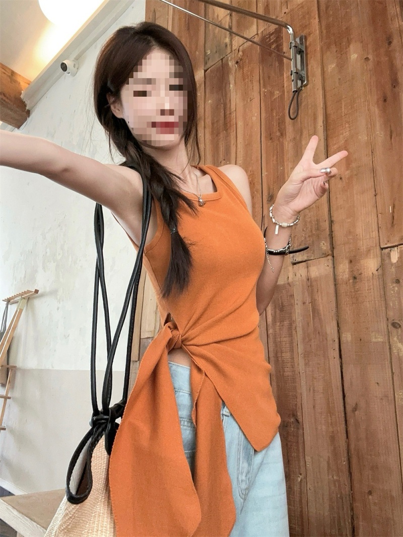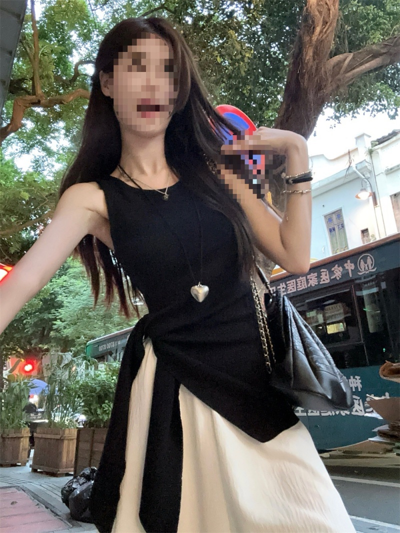 2024夏季新款韩版不规则侧边开叉系带蝴蝶结纯欲显瘦修身针织背心