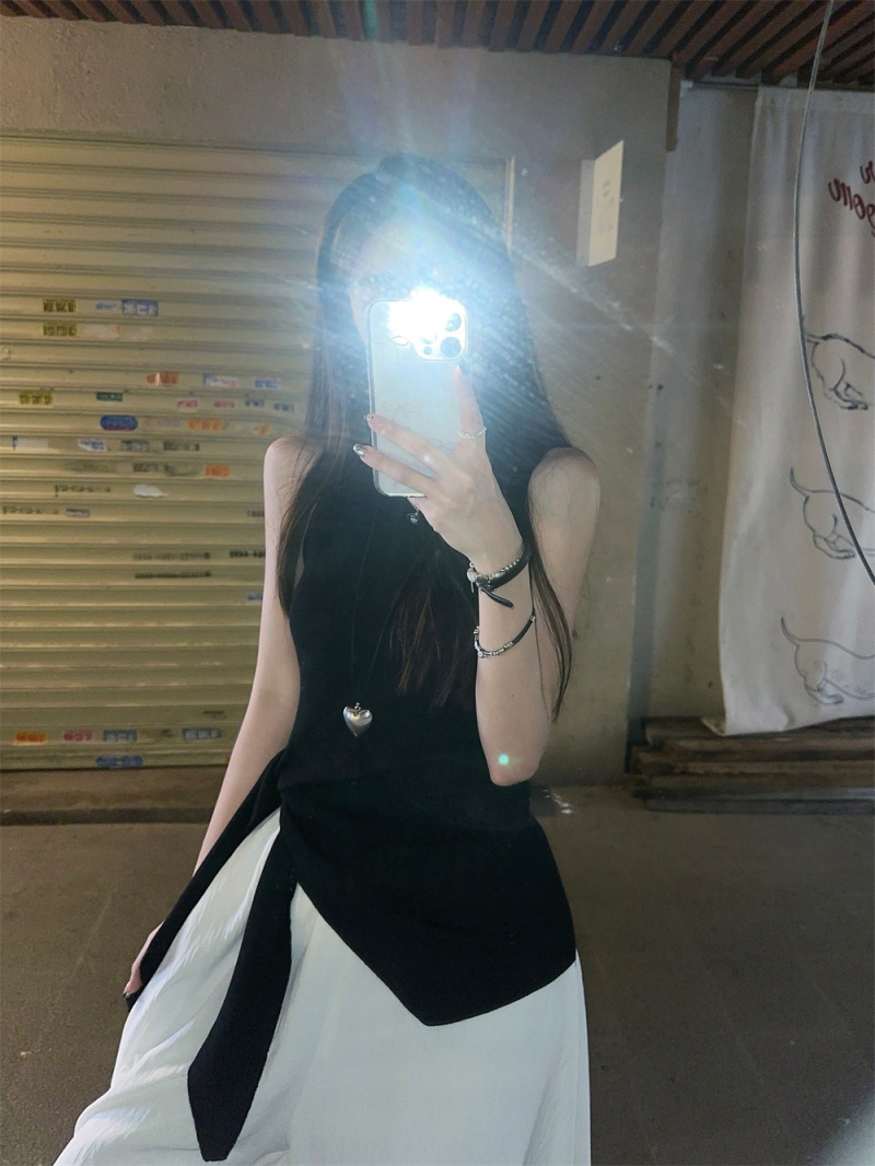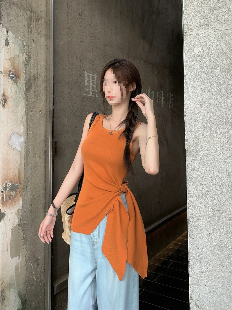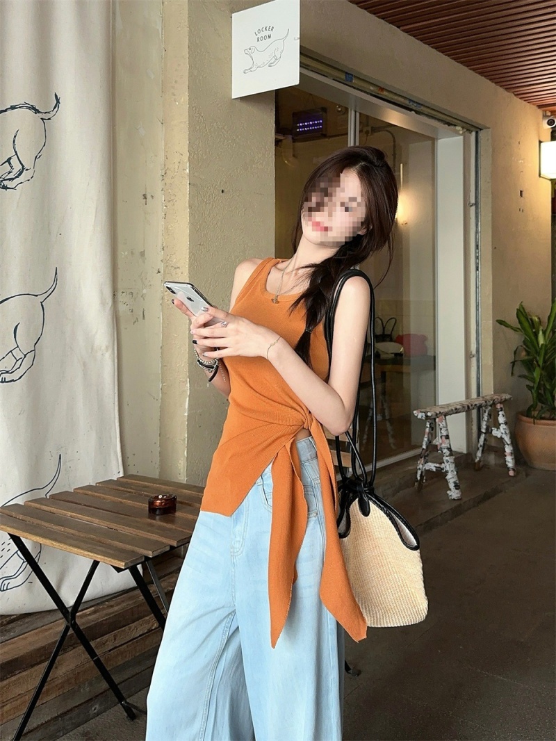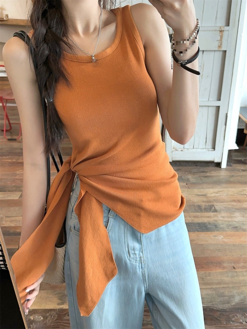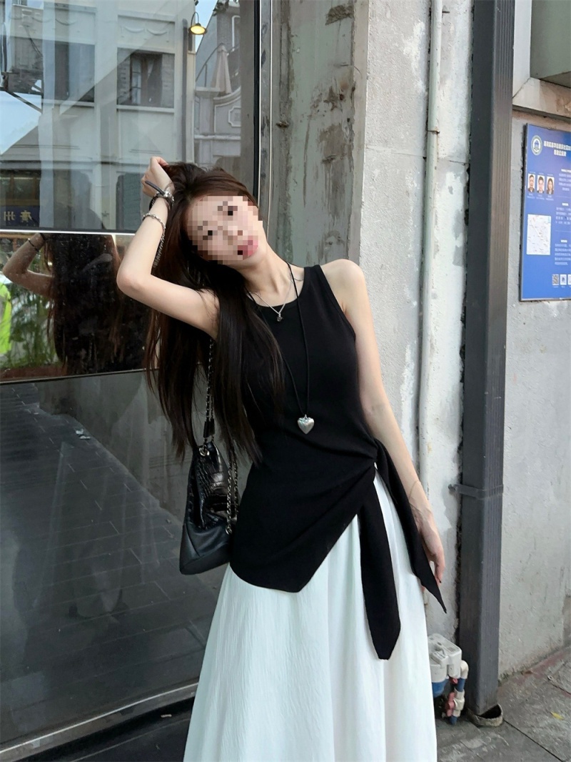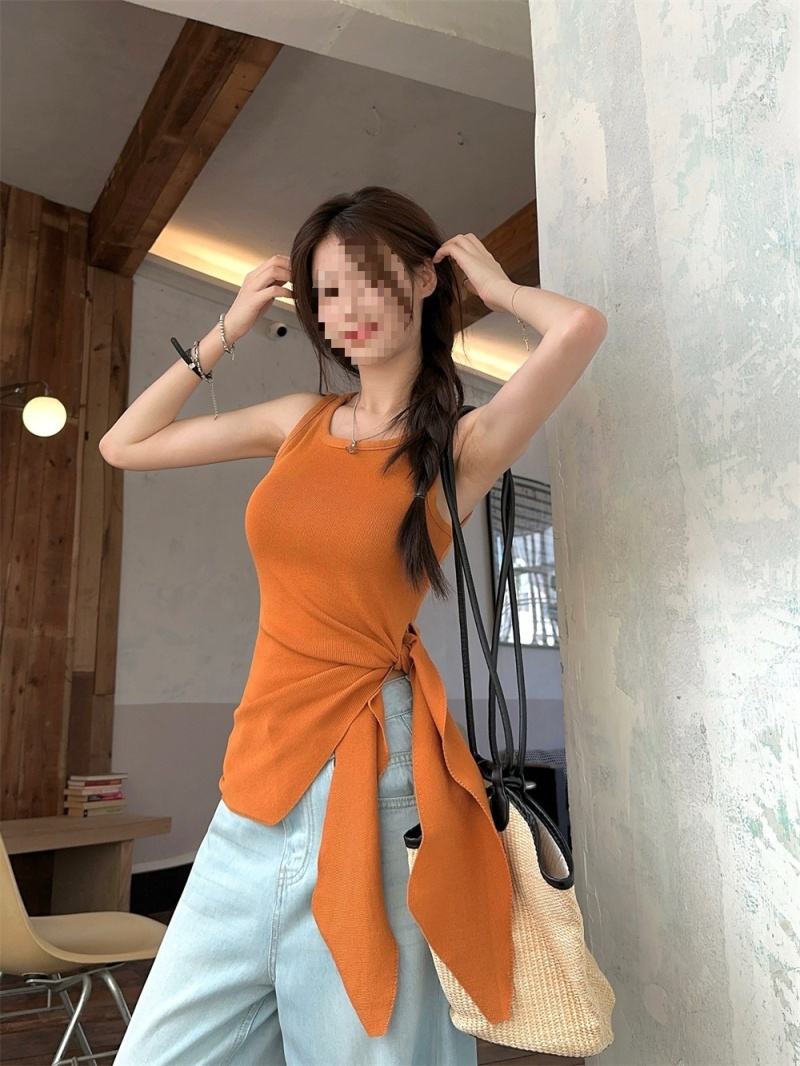 2024夏季新款韩版不规则侧边开叉系带蝴蝶结纯欲显瘦修身针织背心