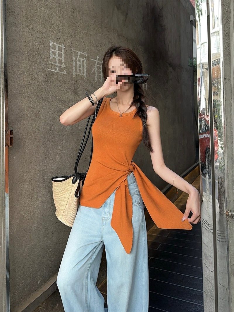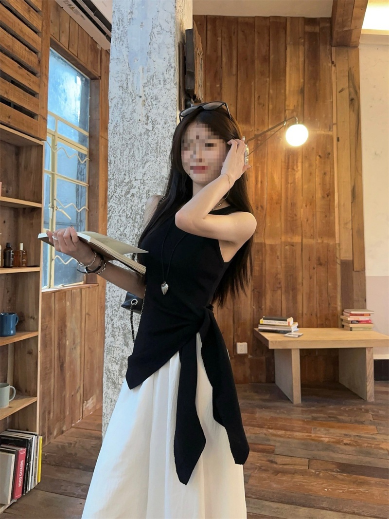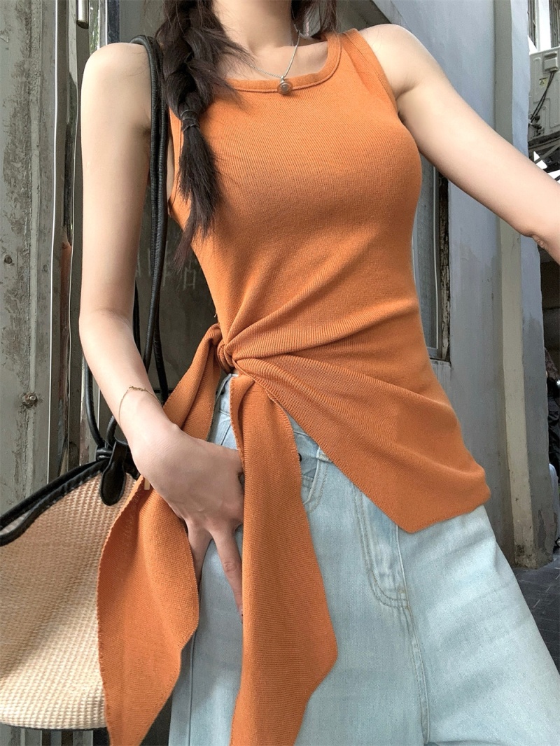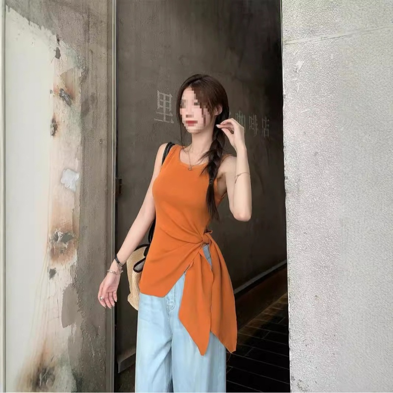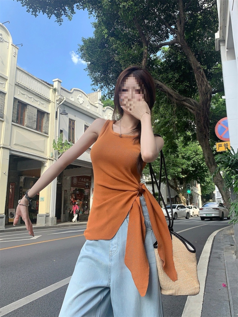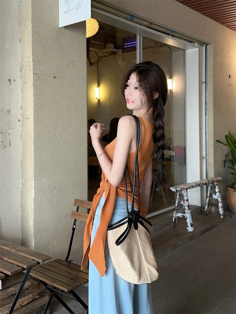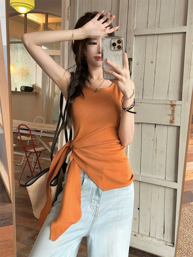 2024夏季新款韩版不规则侧边开叉系带蝴蝶结纯欲显瘦修身针织背心