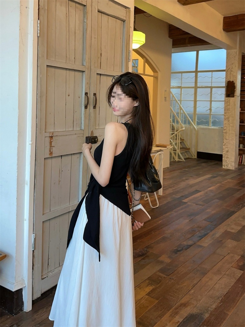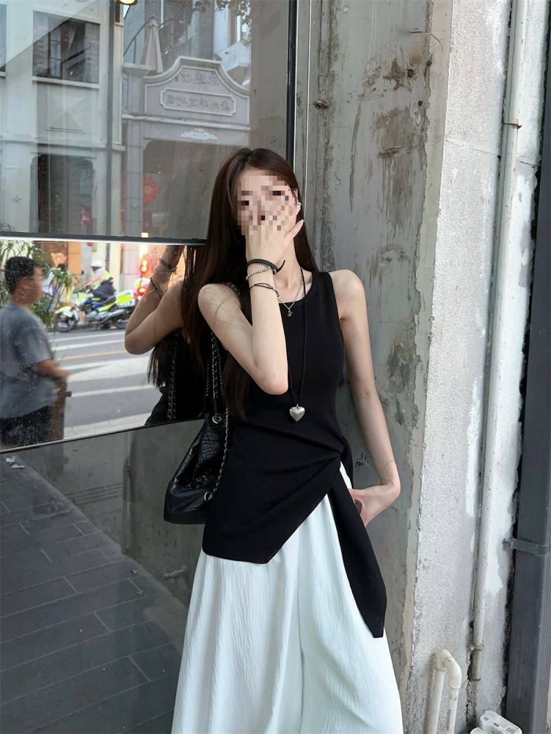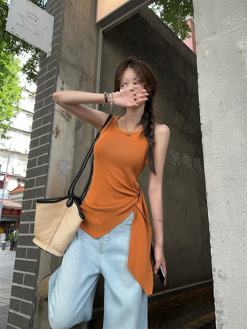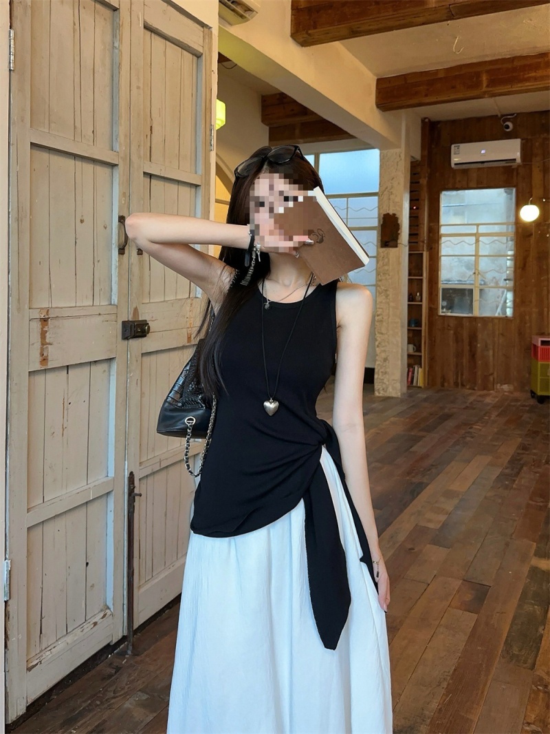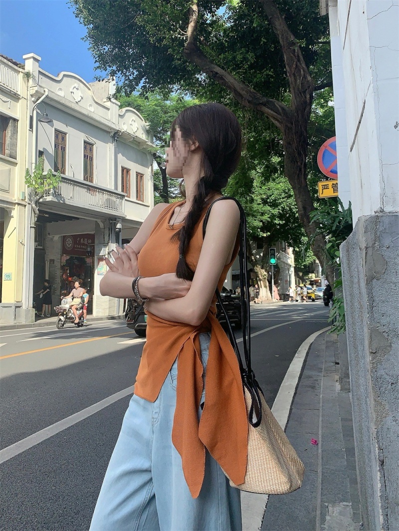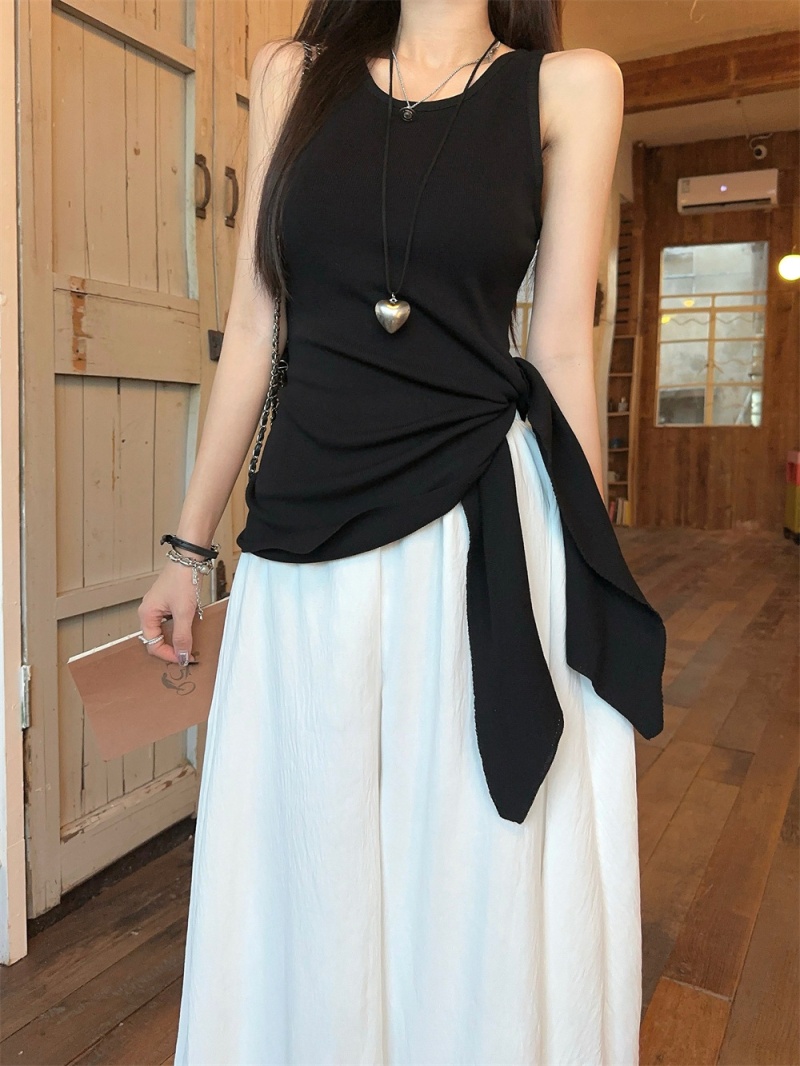 2024夏季新款韩版不规则侧边开叉系带蝴蝶结纯欲显瘦修身针织背心