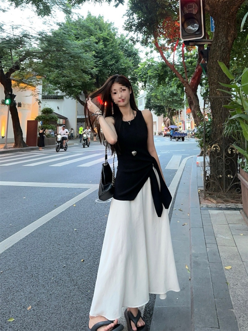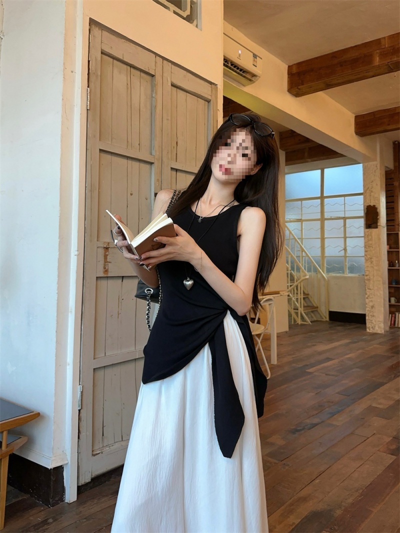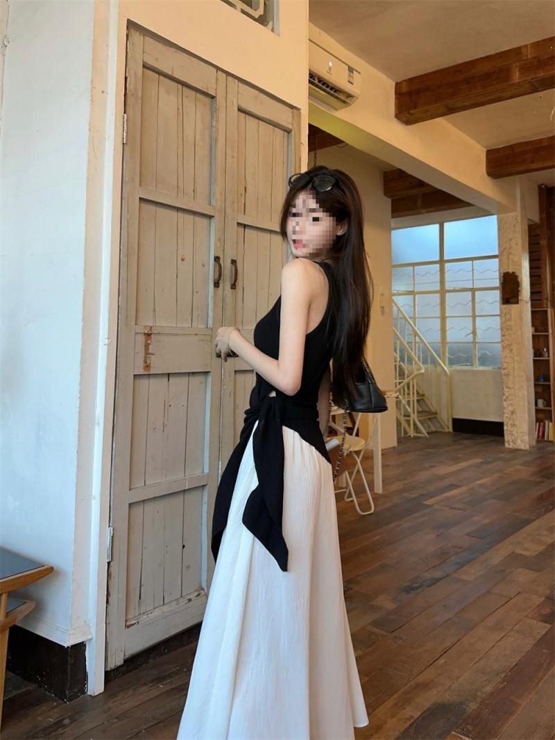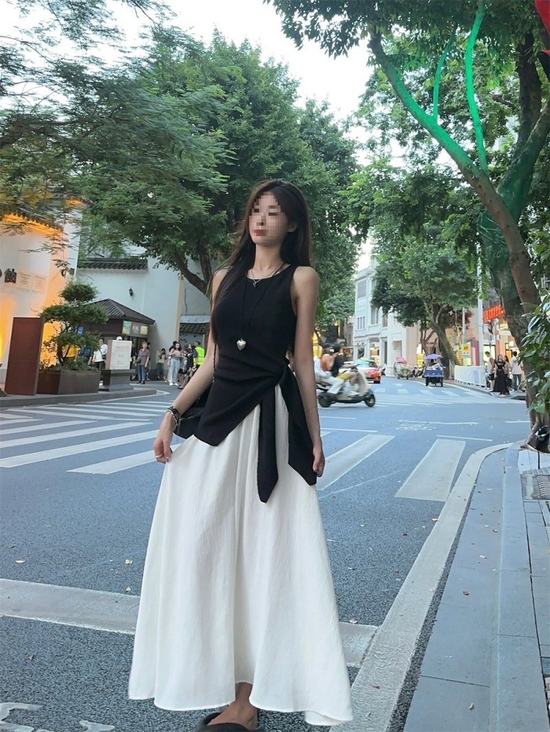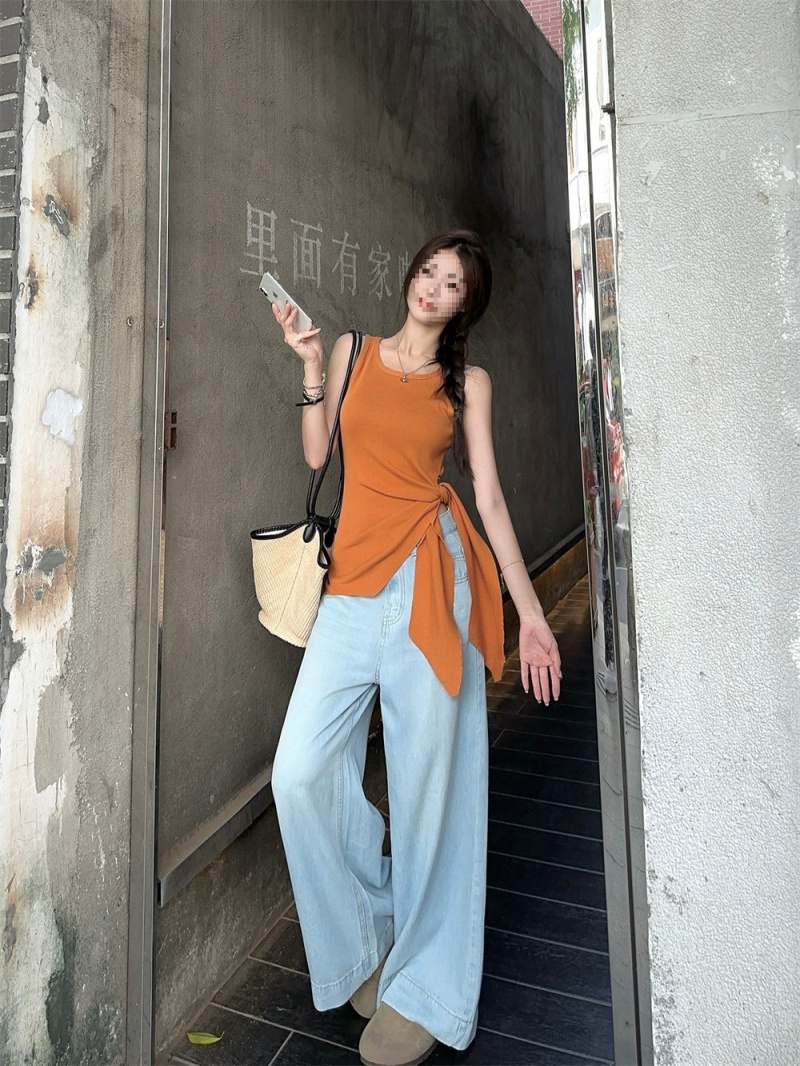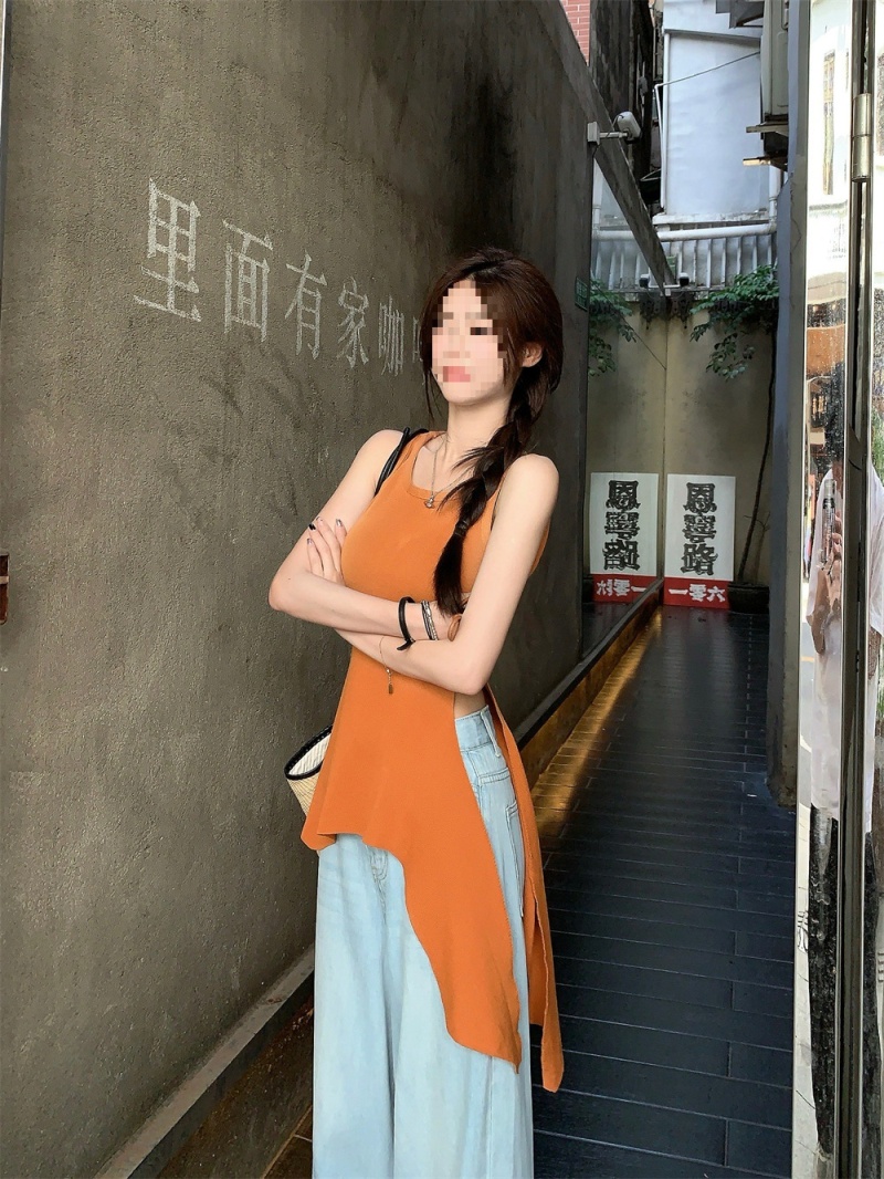 2024夏季新款韩版不规则侧边开叉系带蝴蝶结纯欲显瘦修身针织背心