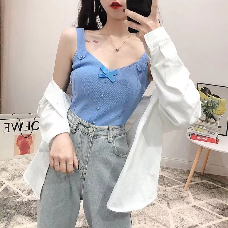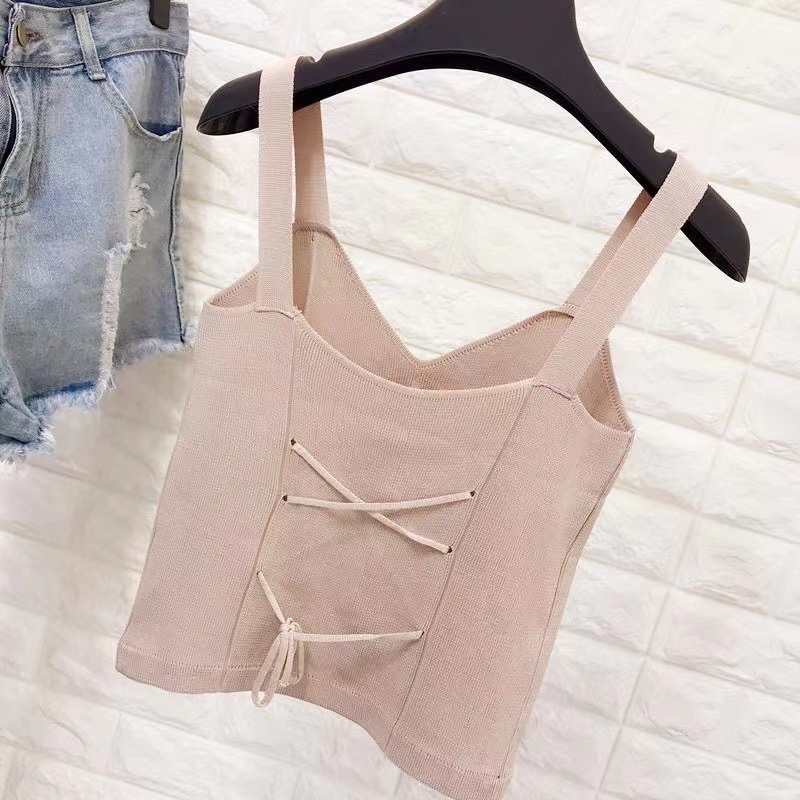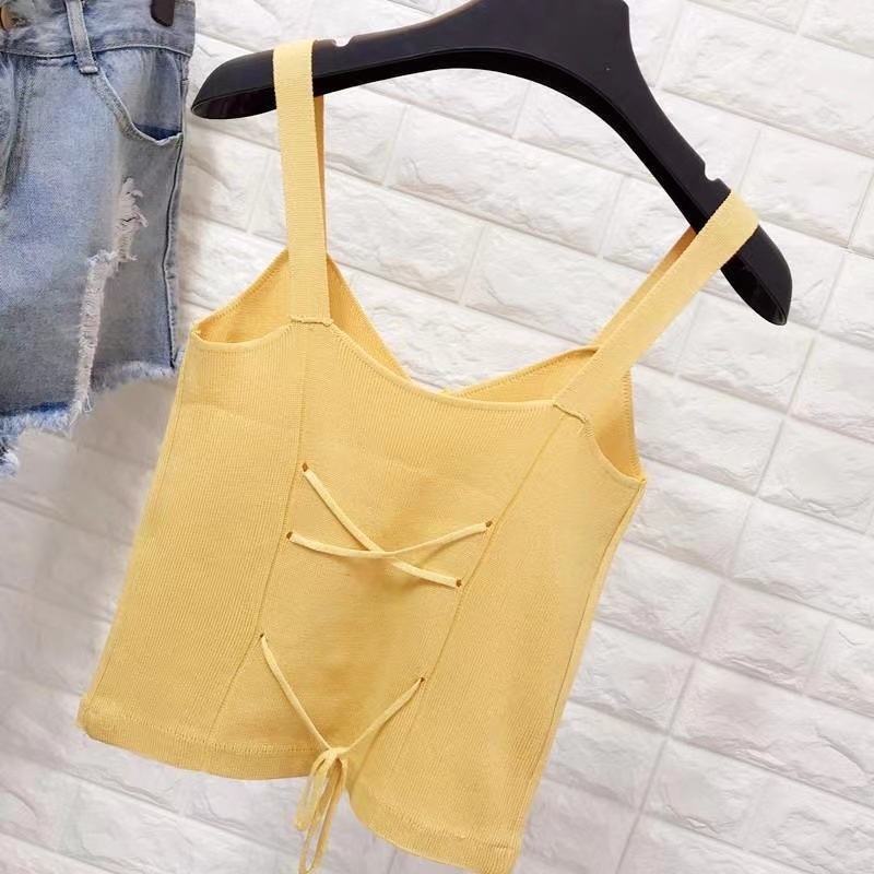 外穿打底小背心港味复古后背小心机蝴蝶结V领绑带显瘦针织吊带女