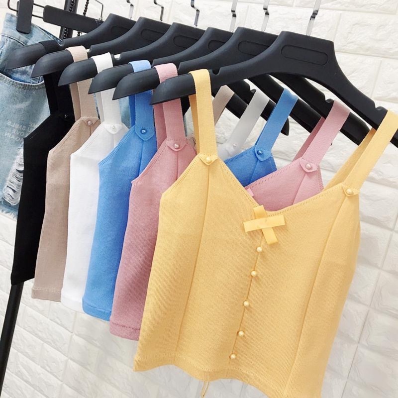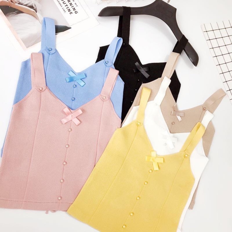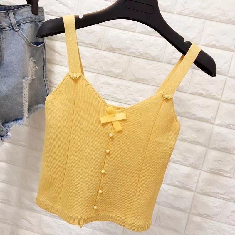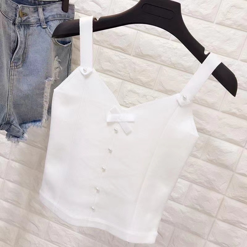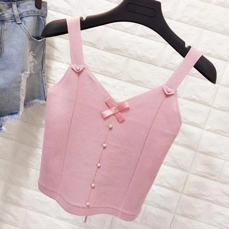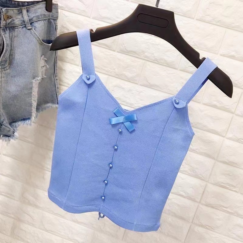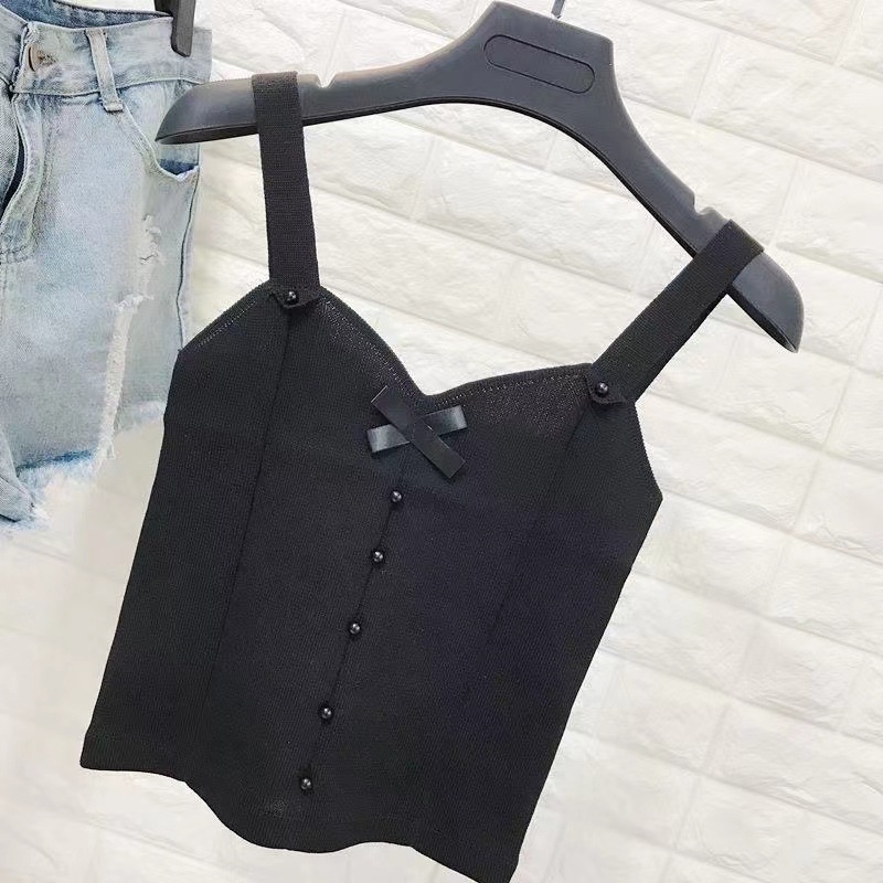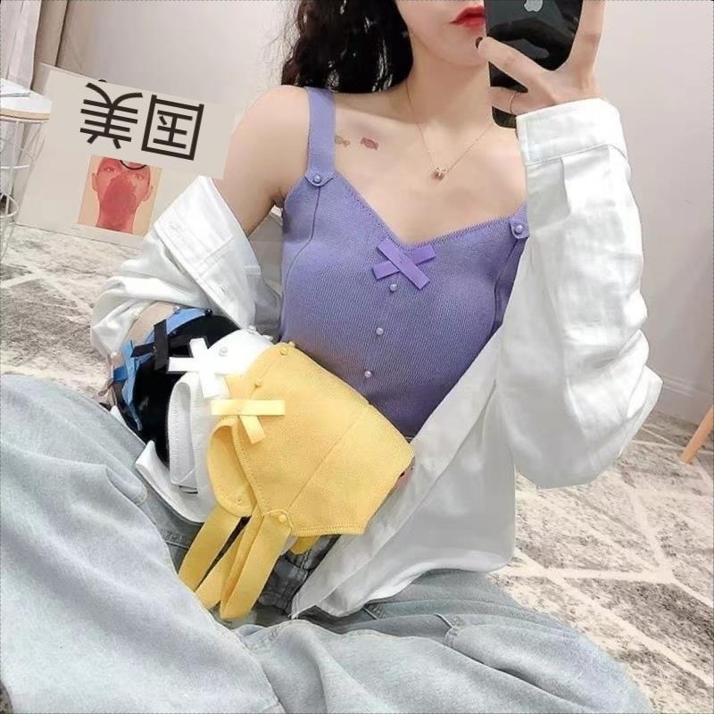 夏季新款设计感薄款蝴蝶结短款内搭外穿上衣辣妹针织bm吊带背心女