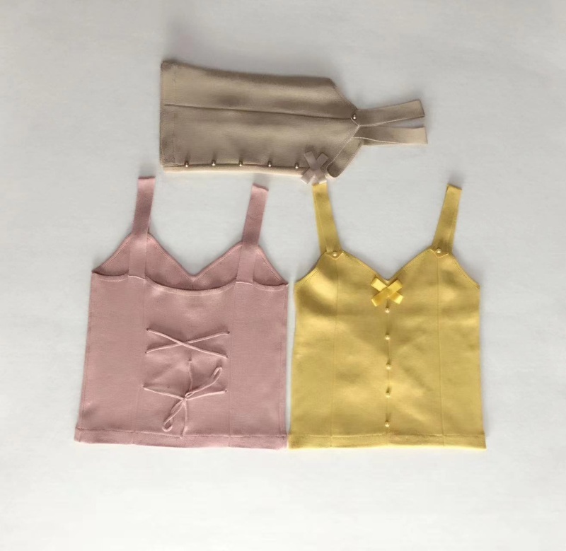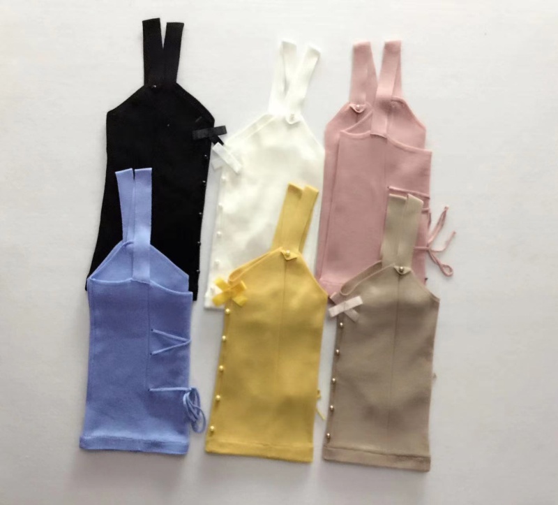 夏季短款纯色法式针织薄款挂脖吊带性感辣妹外穿露背加工定制上衣