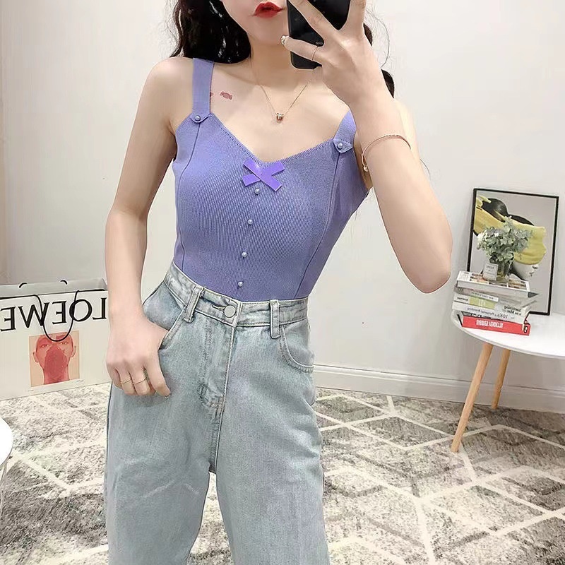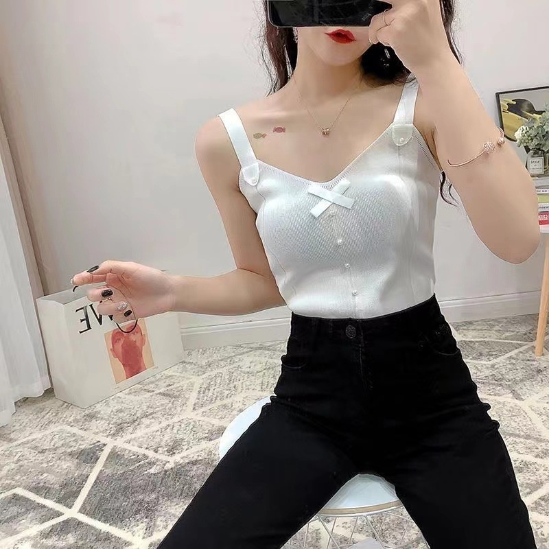 冰丝小吊带无袖背心女夏外穿内搭宽松韩版短款v领针织打底衫上衣