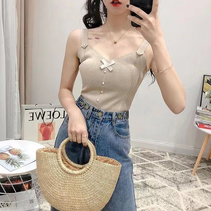 夏季新款山茶花刺绣小香风bm带背心打底针织背心吊带性感上衣女潮