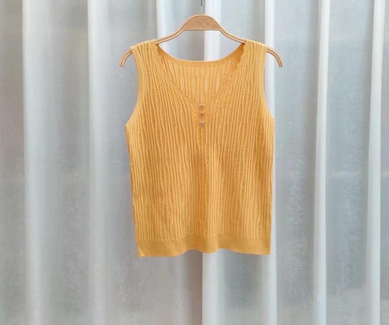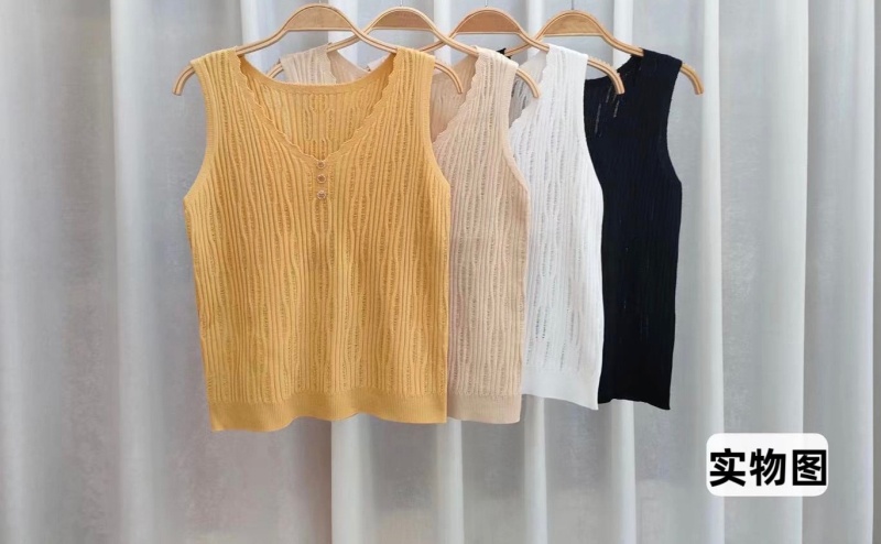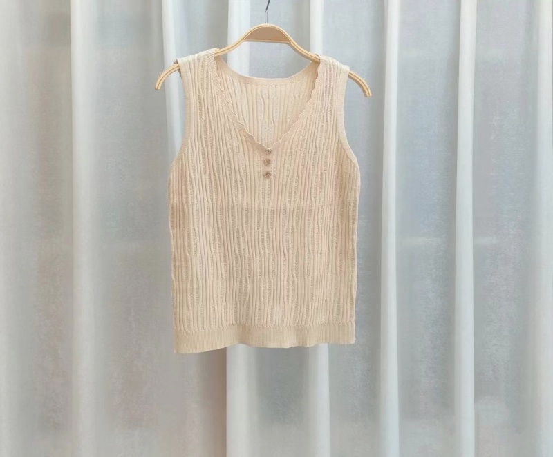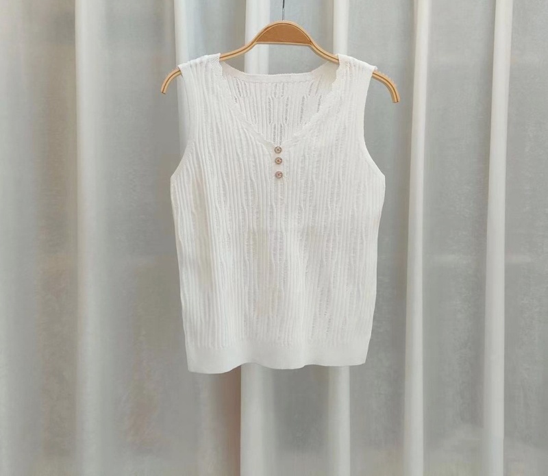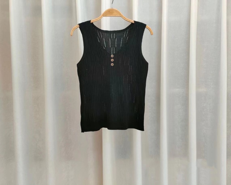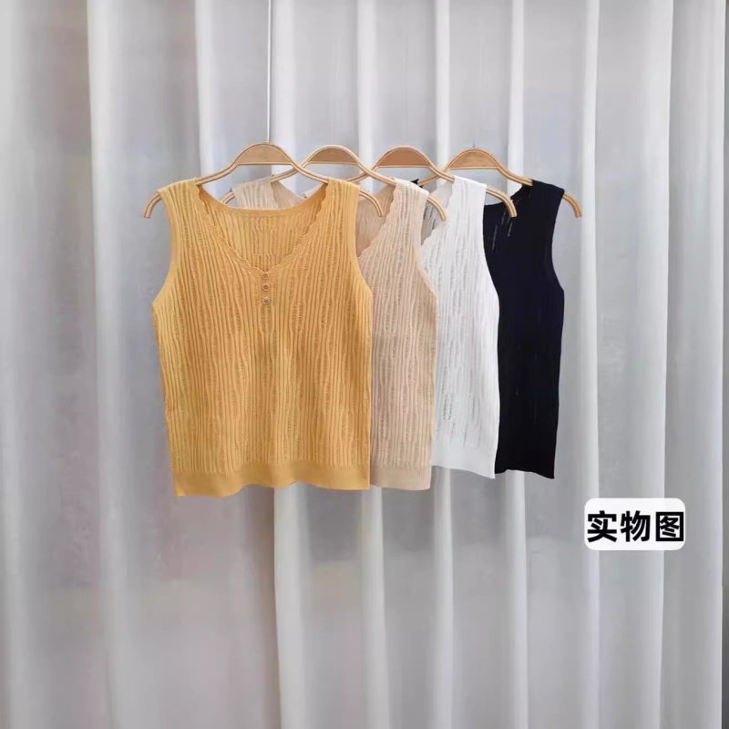 现货批发夏季冰丝针织提花镂空钮扣百搭小背心短款无袖上衣女薄款