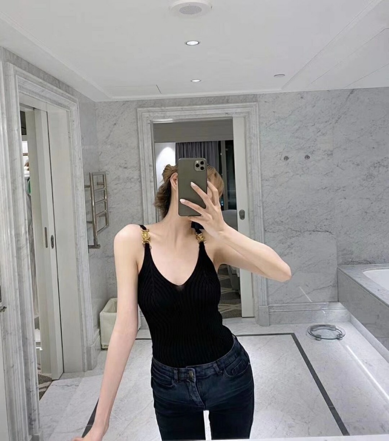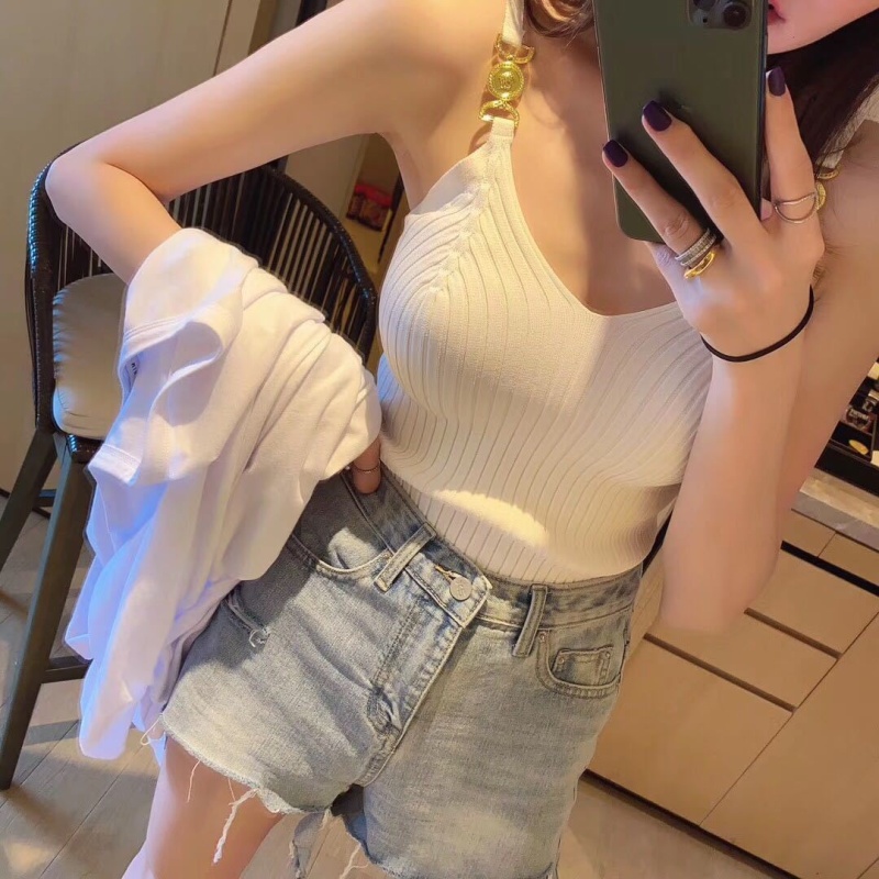 装饰吊带针织背心2023春夏新款韩国性感露肩V领弹力紧身内搭上衣