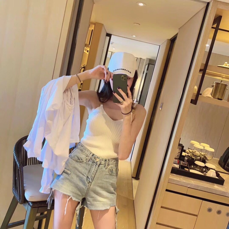 夏季短款纯色法式针织薄款挂脖吊带性感辣妹外穿露背加工定制上衣