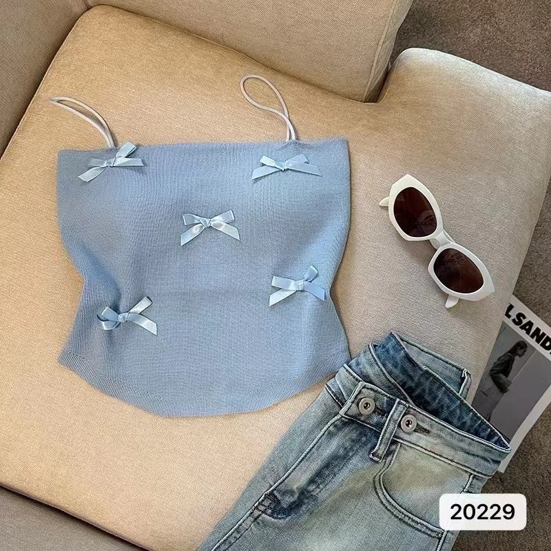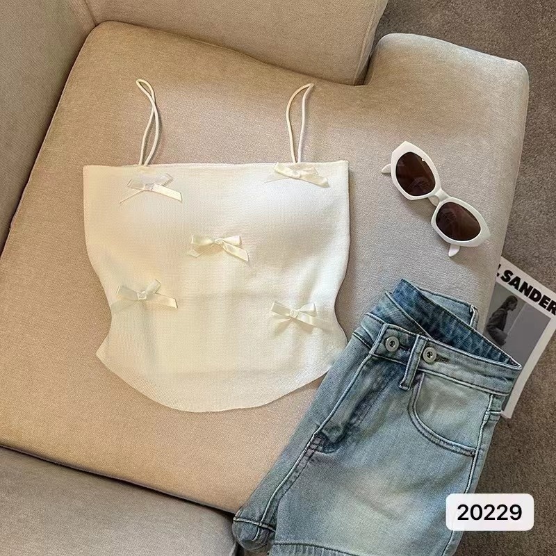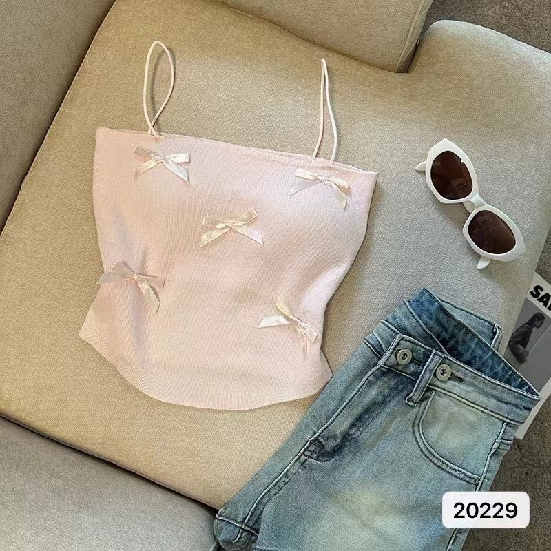 2024夏季甜辣蝴蝶结针织吊带背心女设计感修身外穿内搭短款小上衣