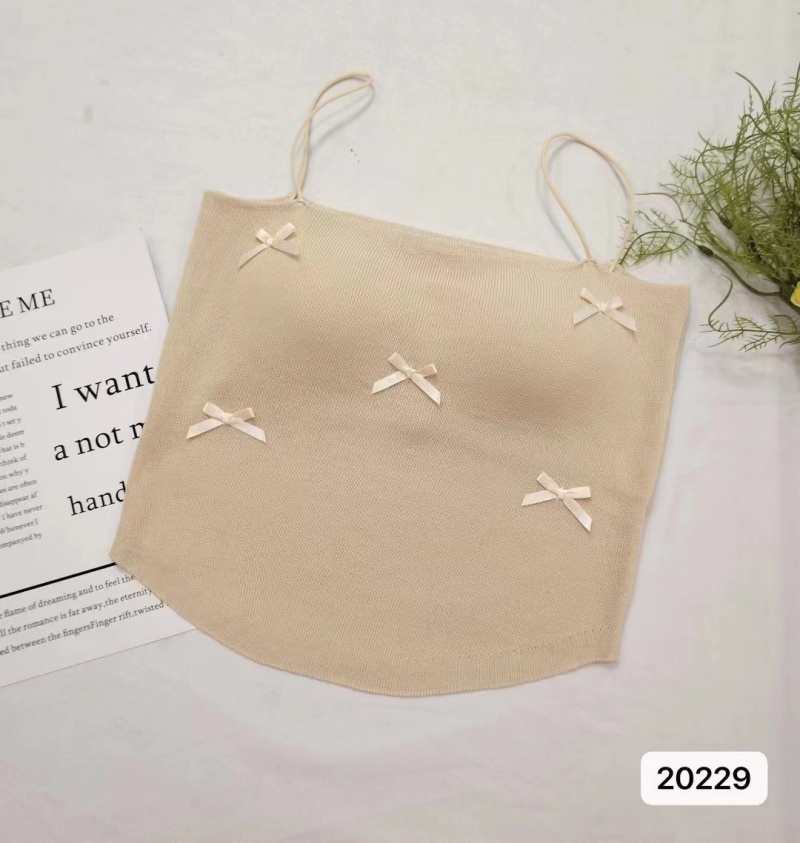夏季蝴蝶结挂脖式针织小吊带内搭美背小众设计纯欲抹胸打底衫上衣