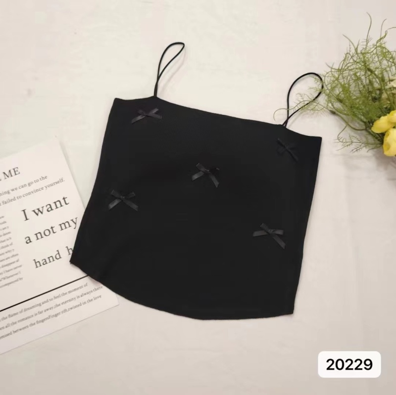 夏季新款设计感薄款蝴蝶结短款内搭外穿上衣辣妹针织bm吊带背心女