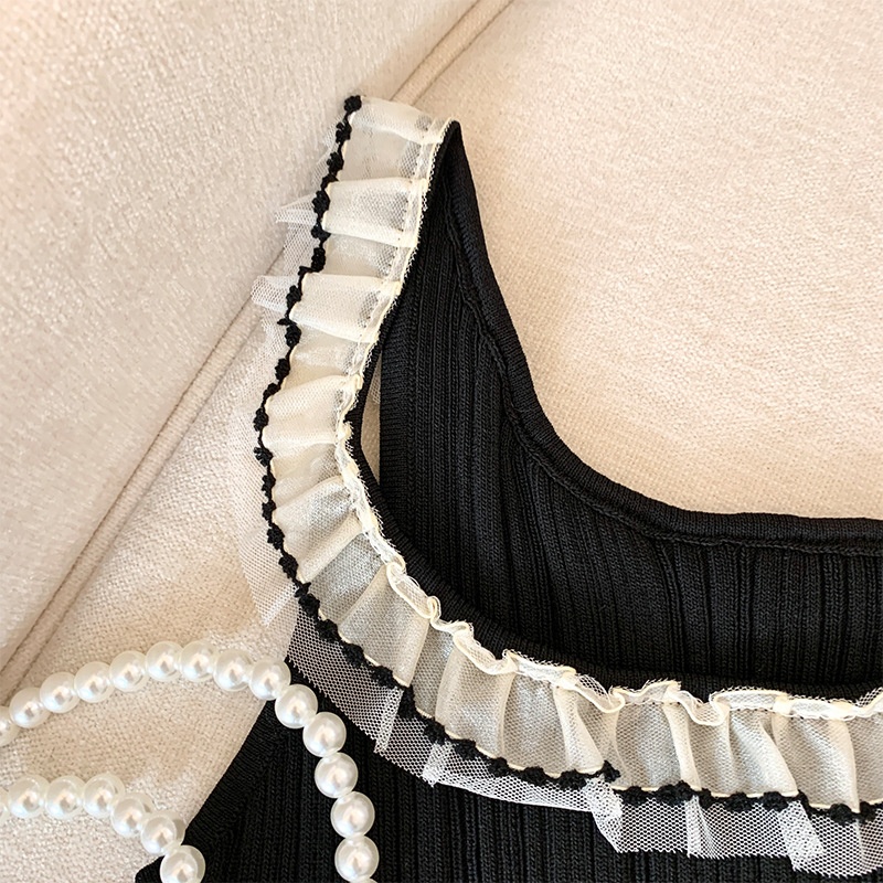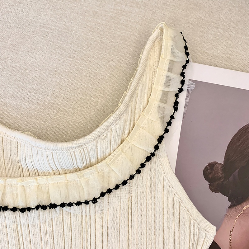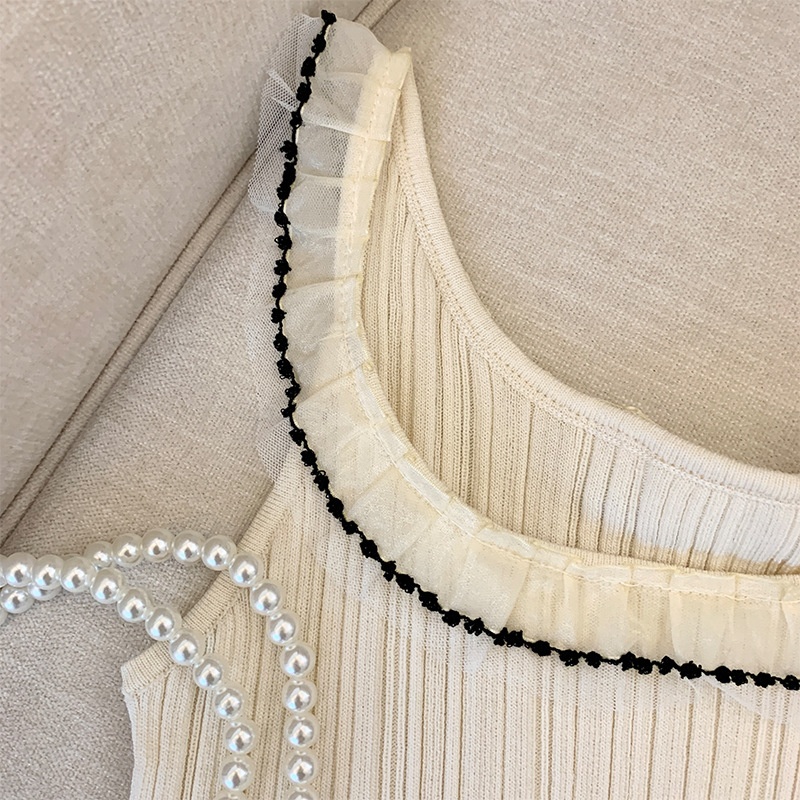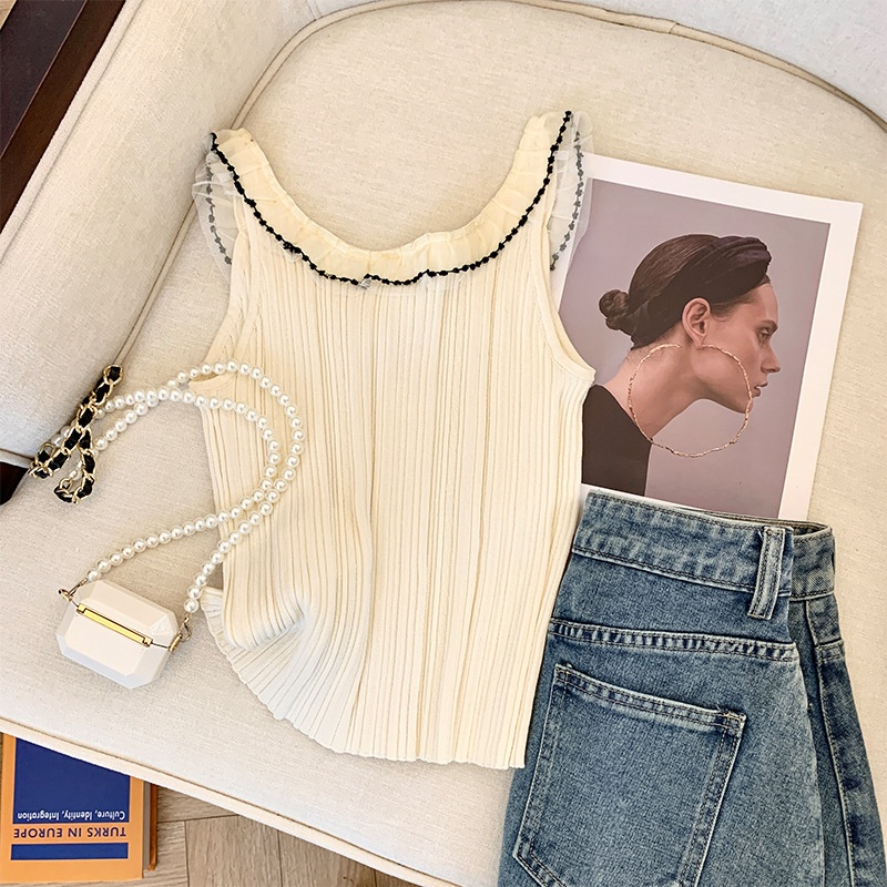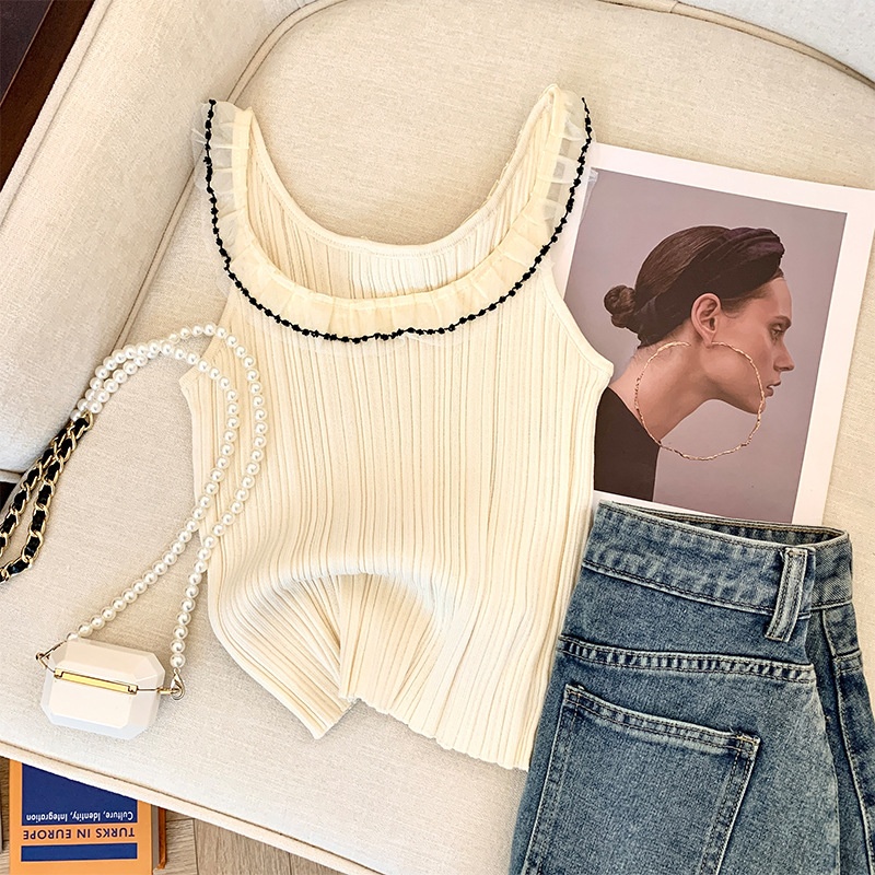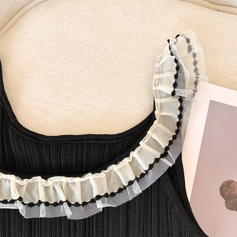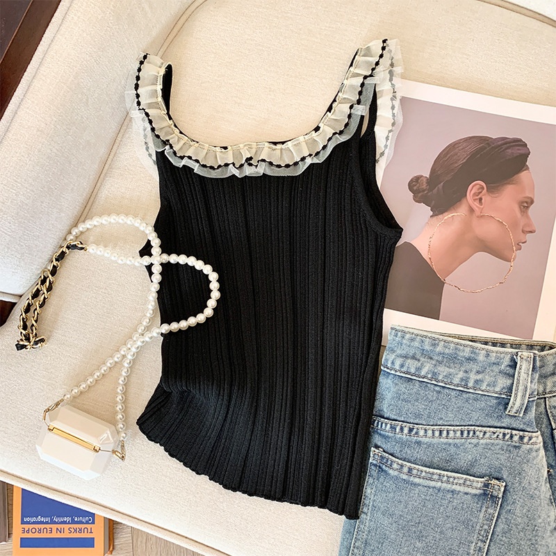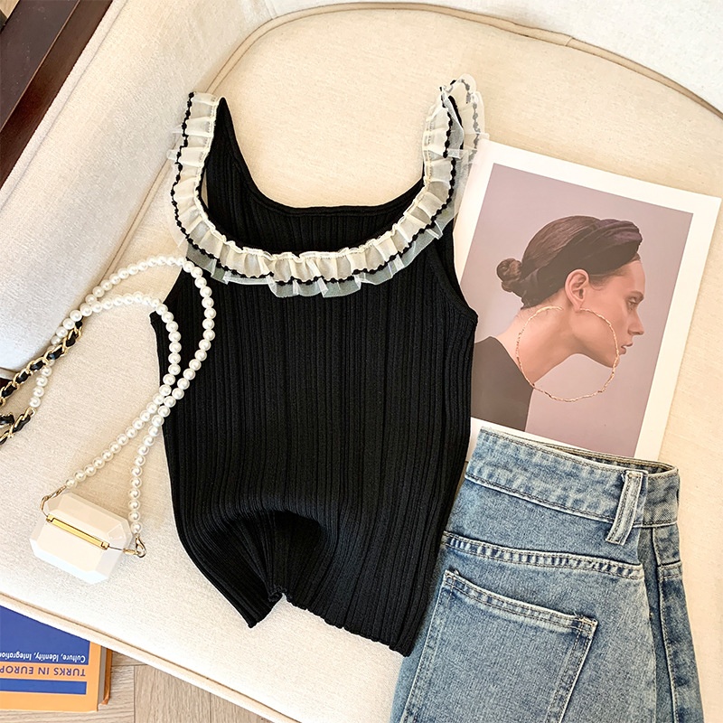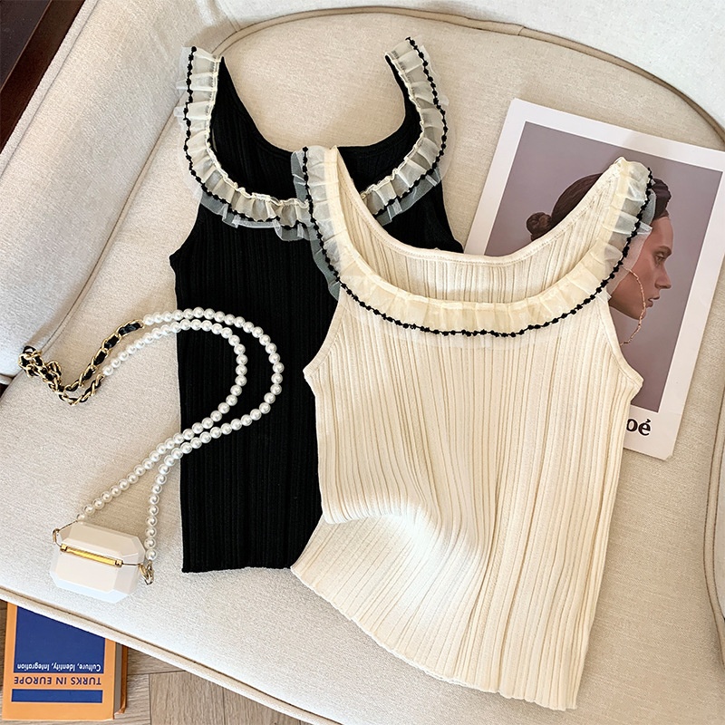冰丝针织小吊带背心蕾丝拼接上衣女夏季小众设计感内搭打底修身潮