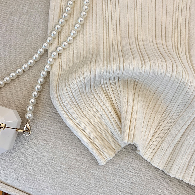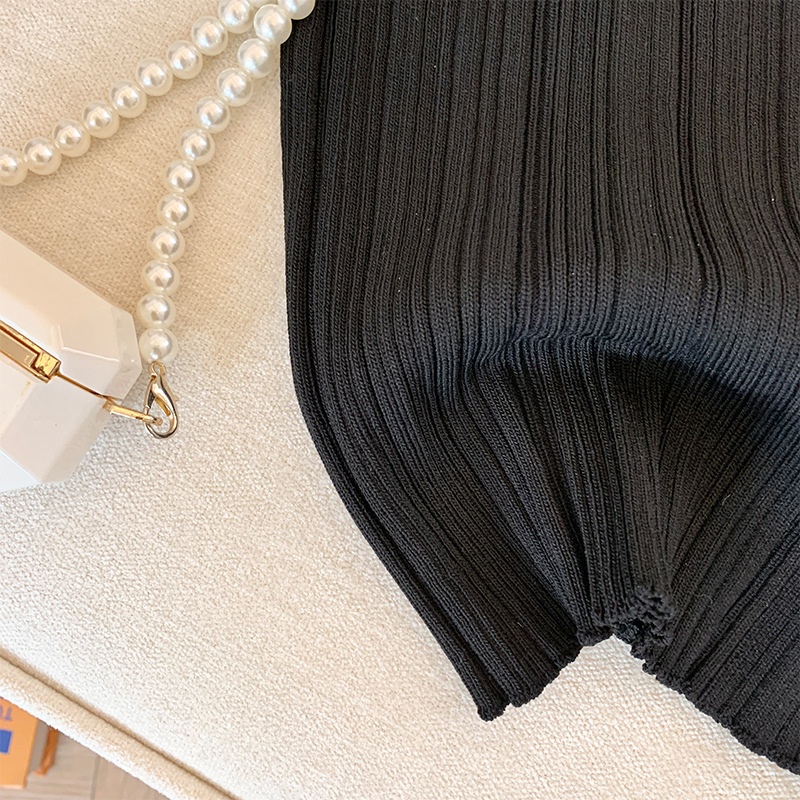 夏季短款纯色法式针织薄款挂脖吊带性感辣妹外穿露背加工定制上衣