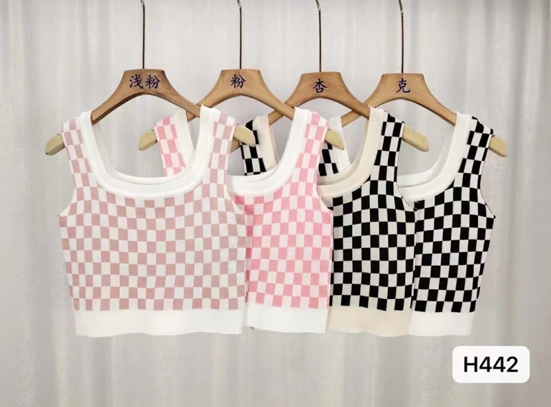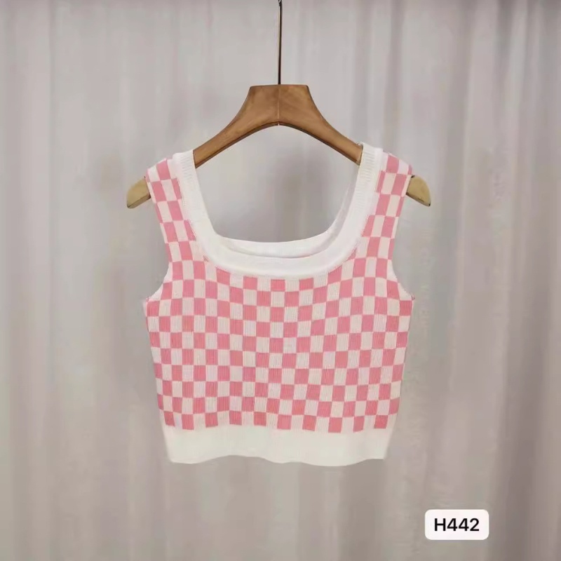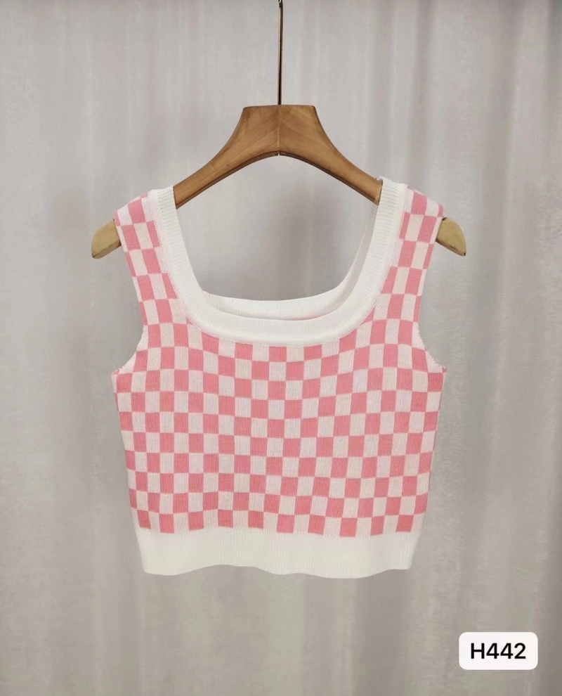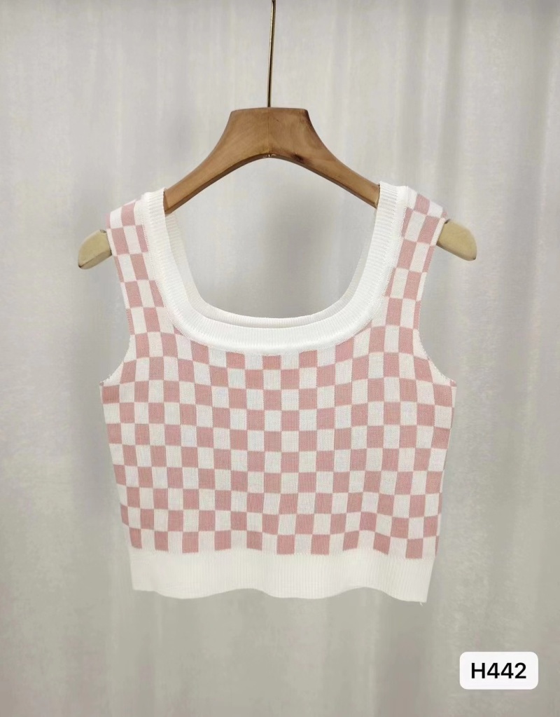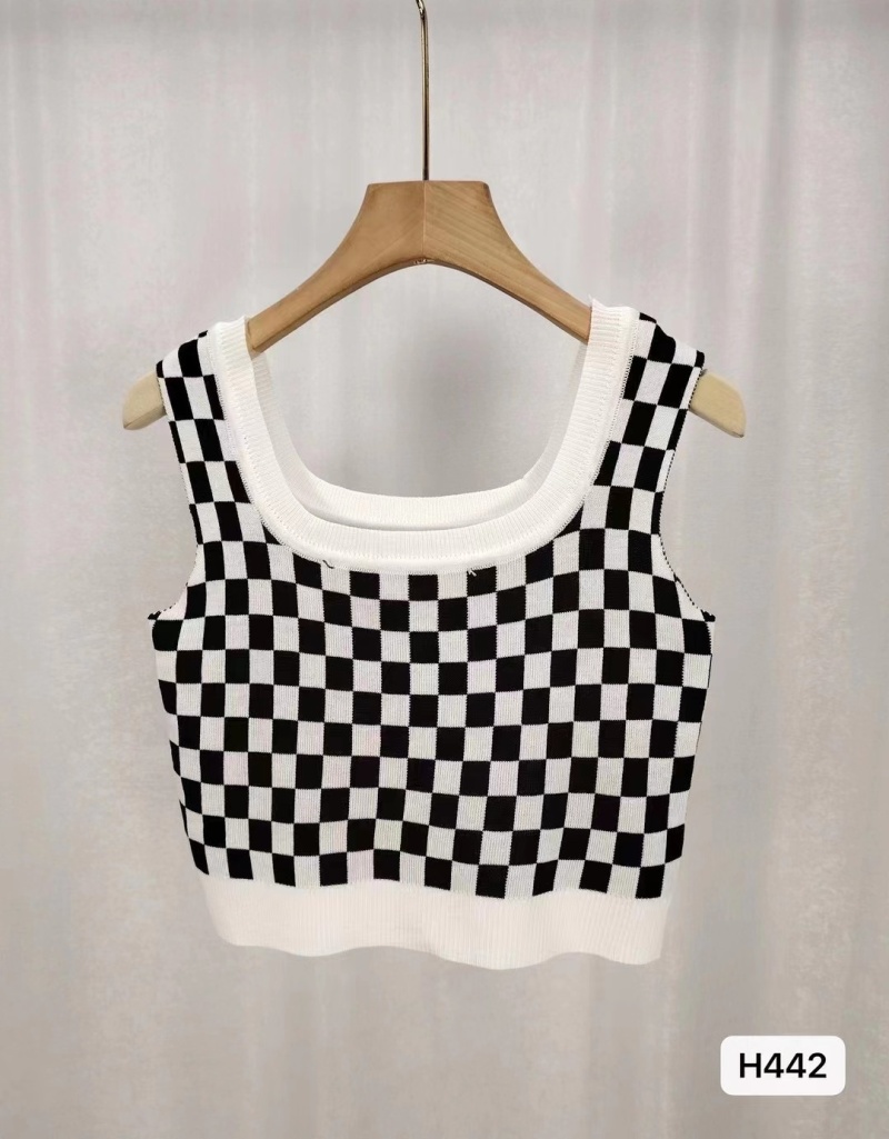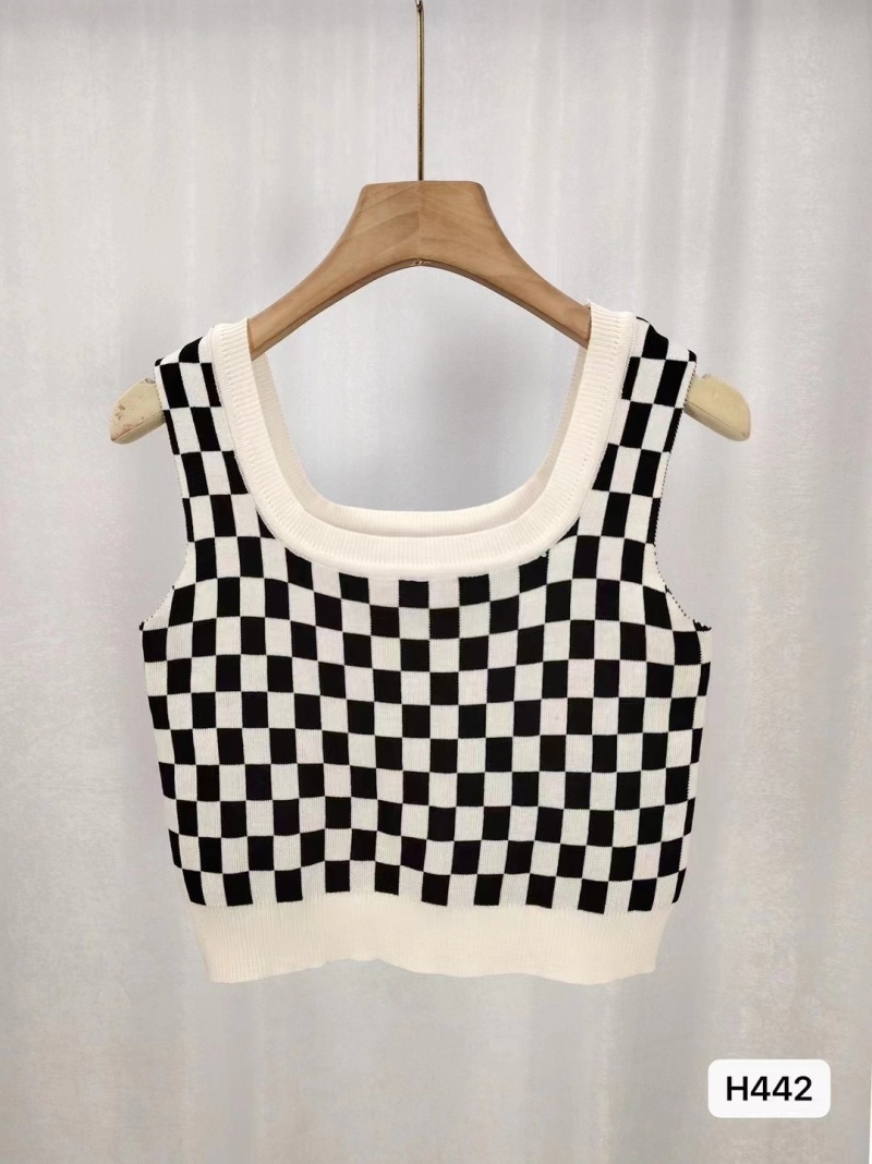 韩版网红辣妹穿搭上衣马甲纯欲气质小个子拼接棋盘针织背心上衣女