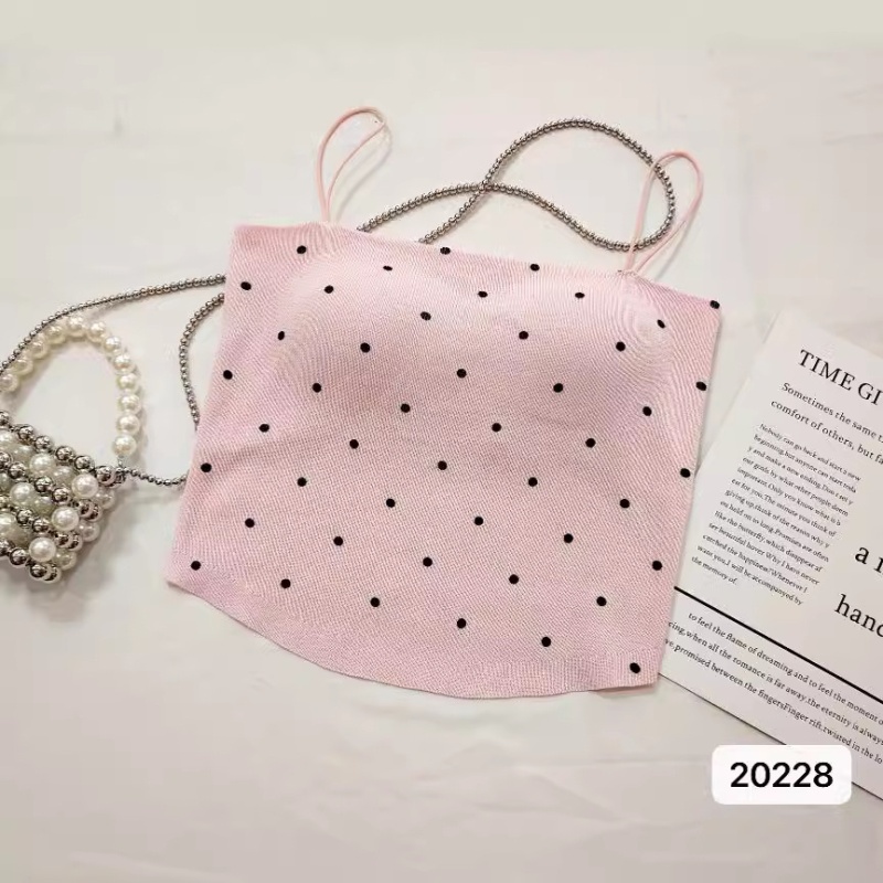 2024夏季新款波点无袖带胸垫针织内搭小吊带短款外穿背心短款上衣