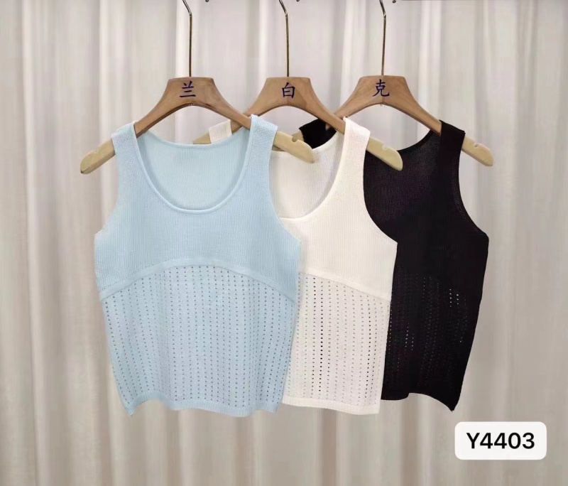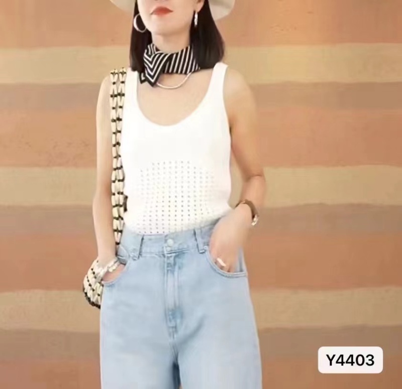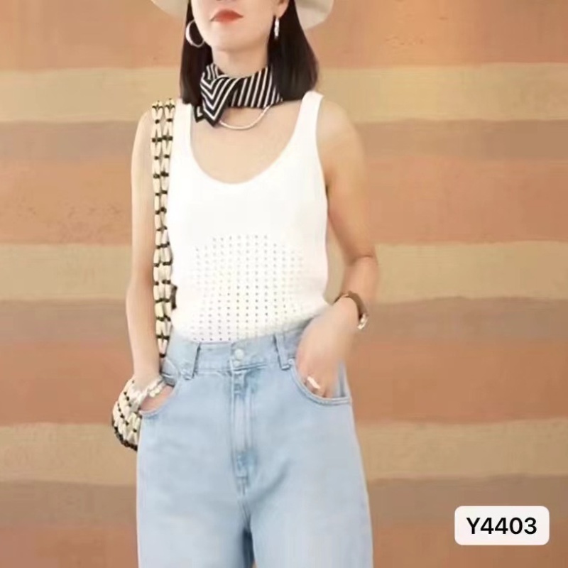 2024夏季新款时尚百搭气质显瘦修身U领纯色镂空设计短款上衣背心