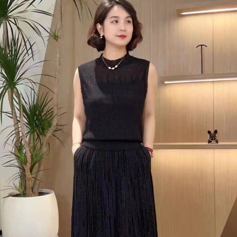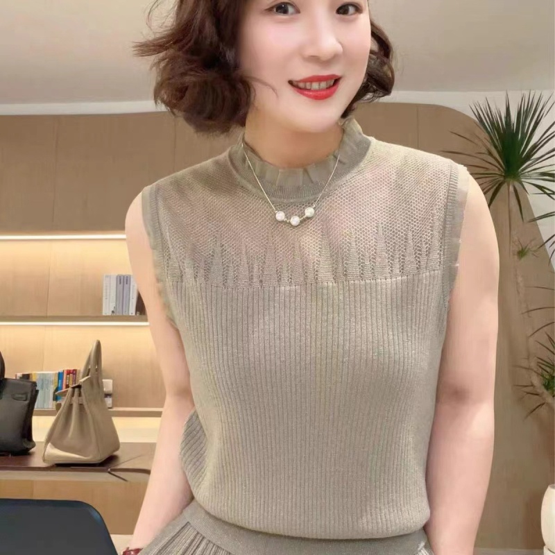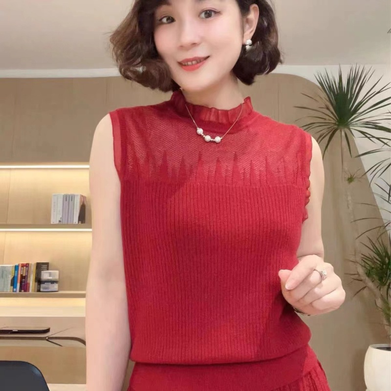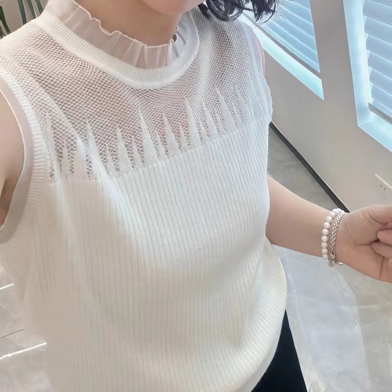 2024显瘦无袖打底衫夏季韩版洋气减龄蕾丝拼接针织衫舒适百搭上衣