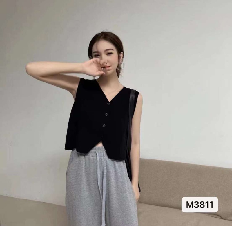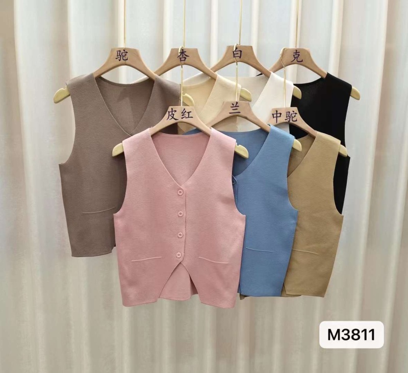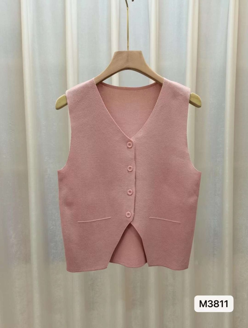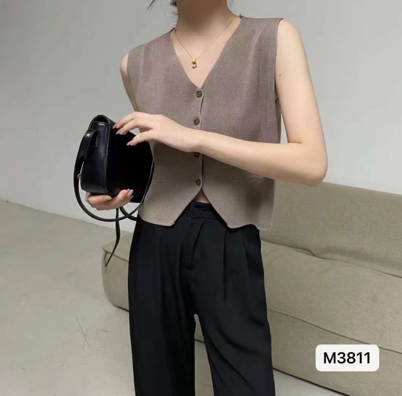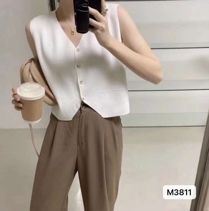 2024爆款穿搭纯色外穿夏季针织马甲复古小个子百搭V领背心上衣女