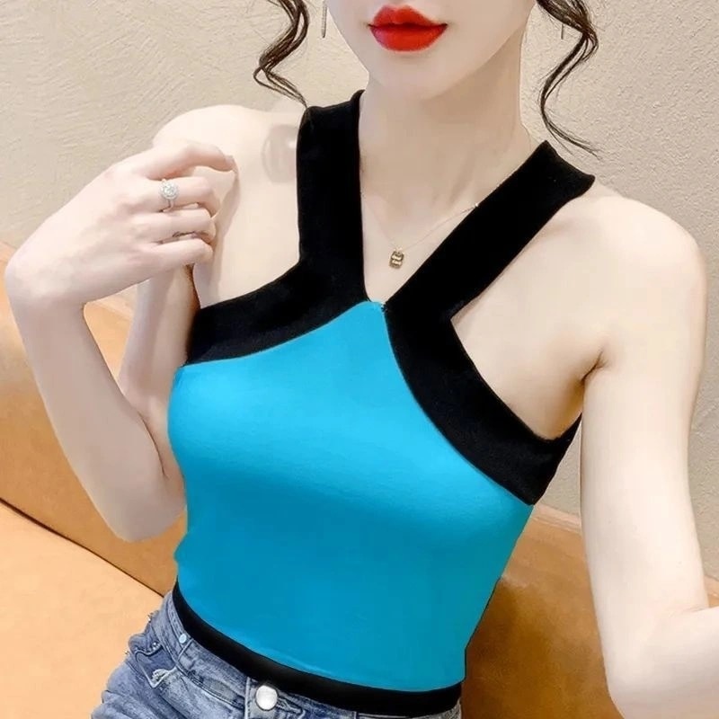 夏季新款性感辣妹吊带背心设计感小众外穿美背高腰露脐针织上衣女