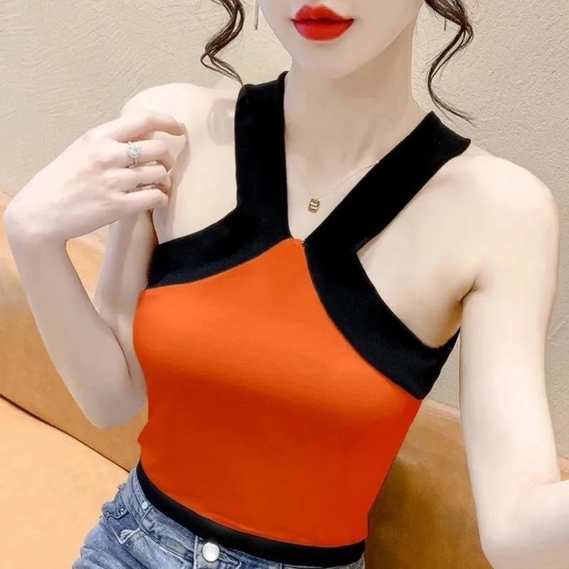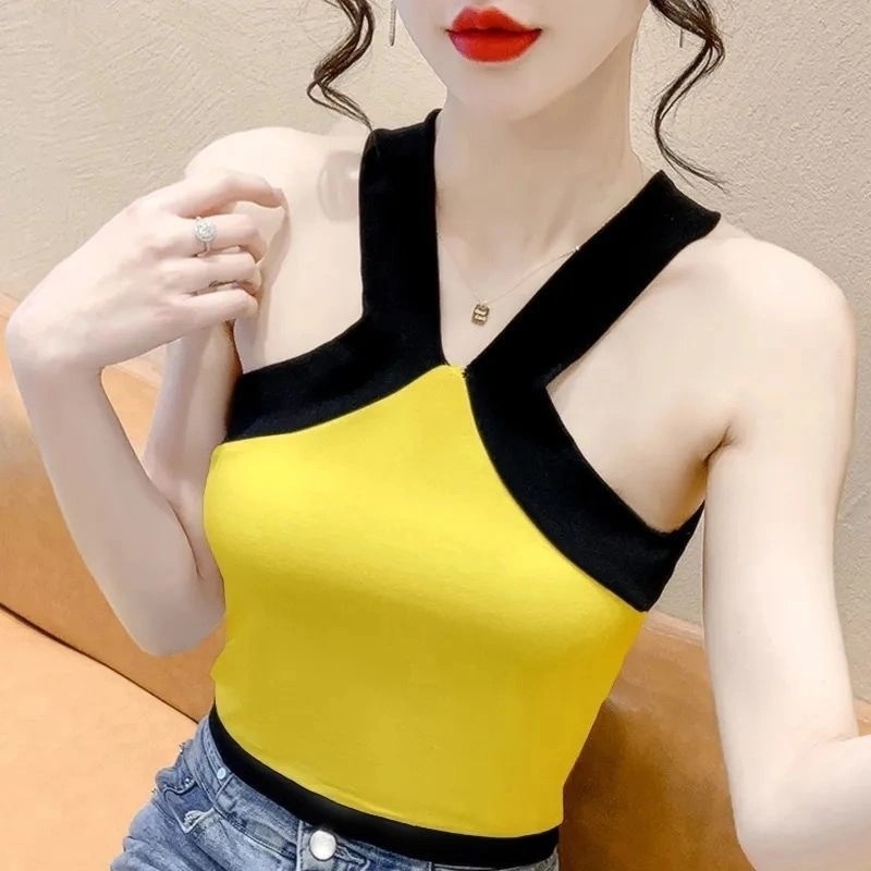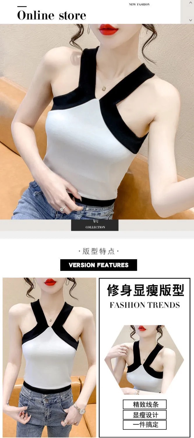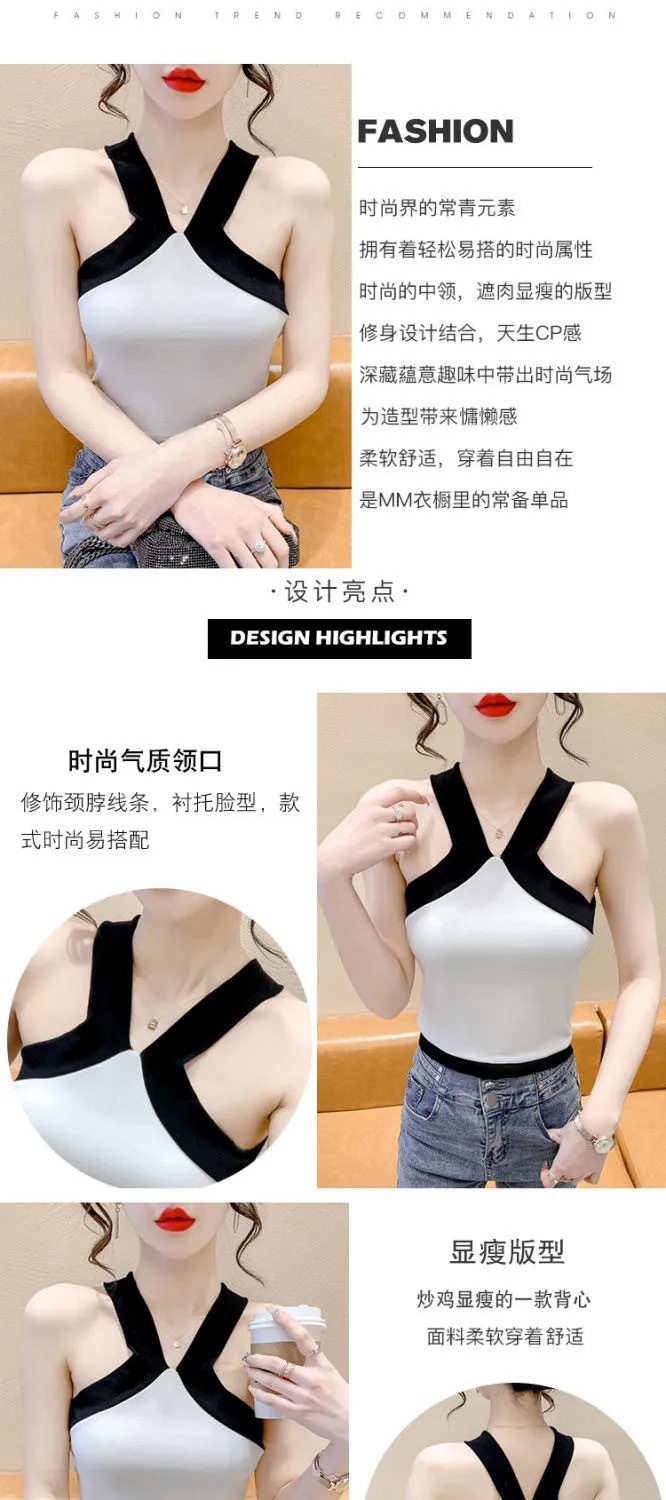 夏季短款纯色法式针织薄款挂脖吊带性感辣妹外穿露背加工定制上衣