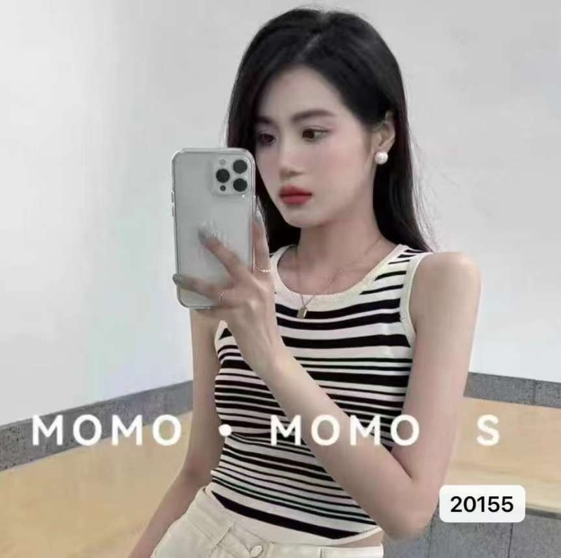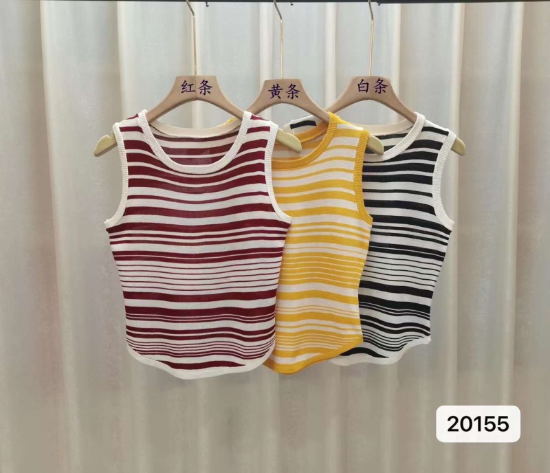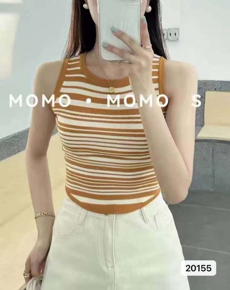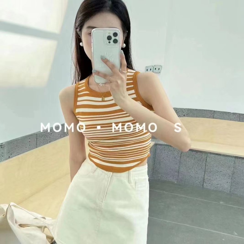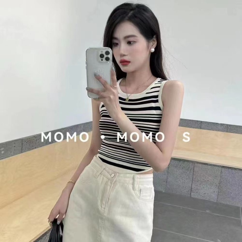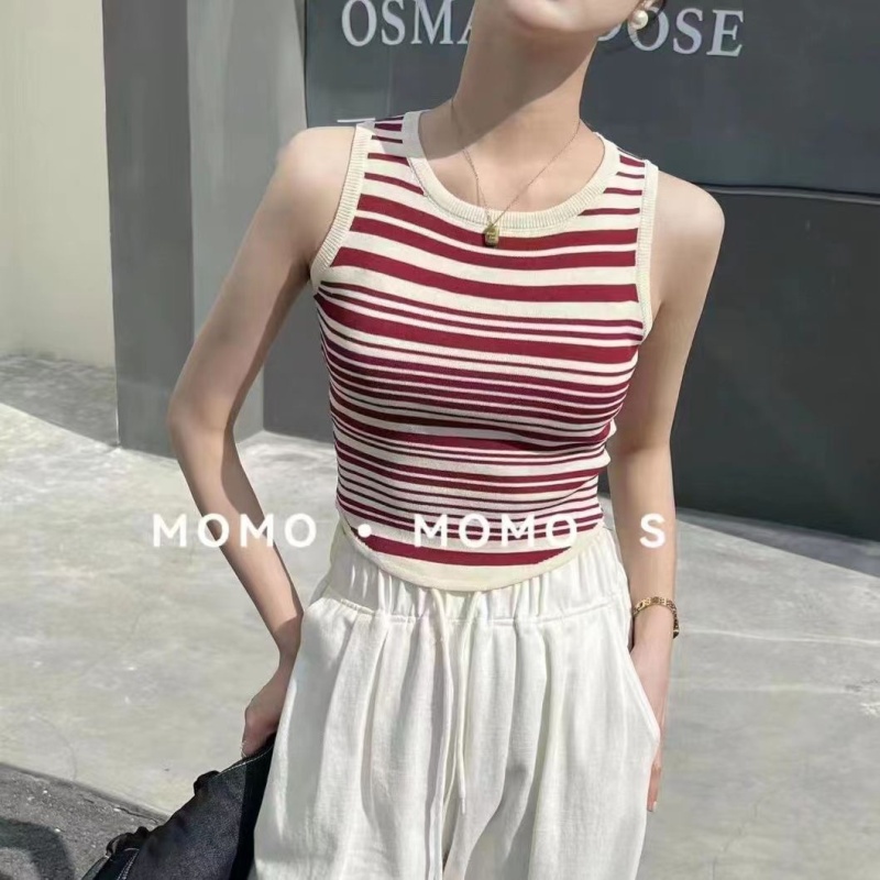 2023春夏辣妹风新款圆领条纹外穿针织吊带背心修身短款无袖上衣女