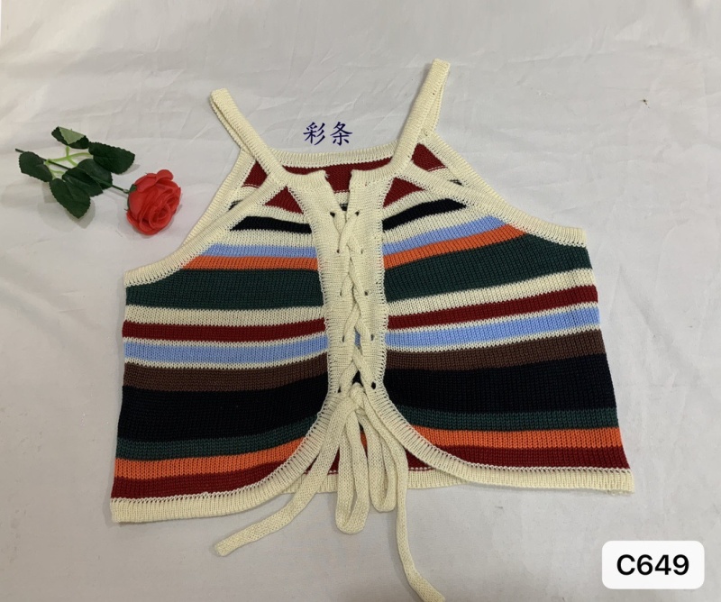 夏季短款纯色法式针织薄款挂脖吊带性感辣妹外穿露背加工定制上衣