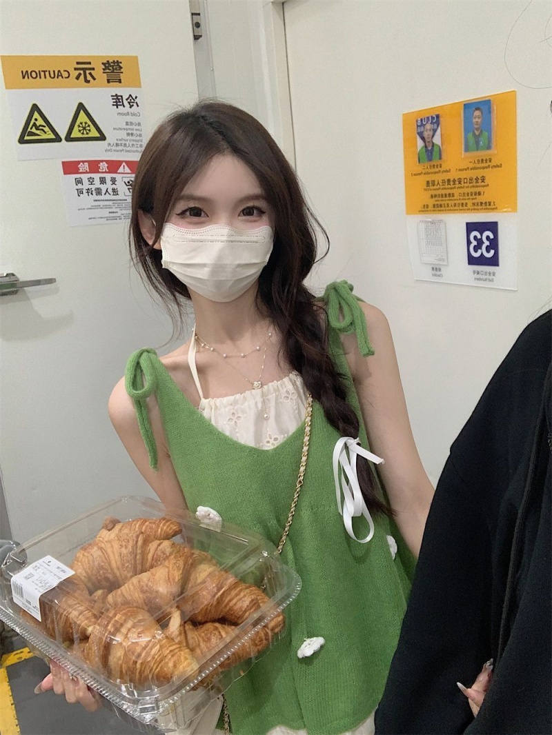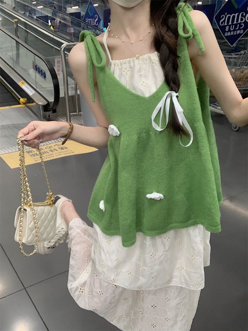 法式温柔小清新立体小花毛衣背心吊带外穿2023年夏季新款配连衣裙