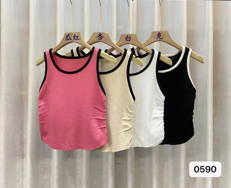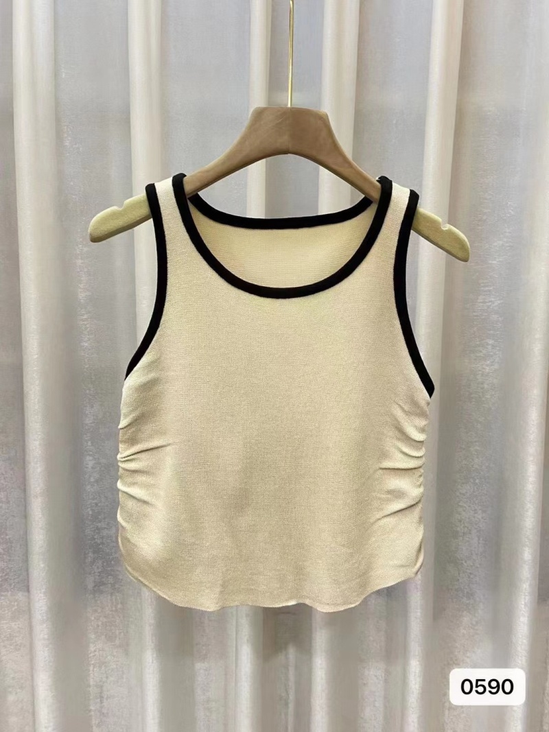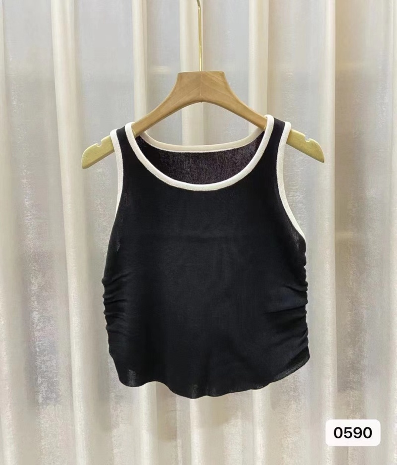 复古撞色2023年夏季新款针织吊带背心设计感辣妹修身短款打底上衣