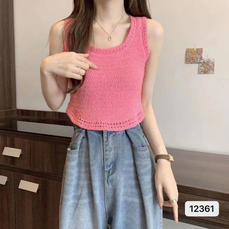 韩版2023年夏季百搭套头背心吊带纯色设计感针织面料短款上衣女潮