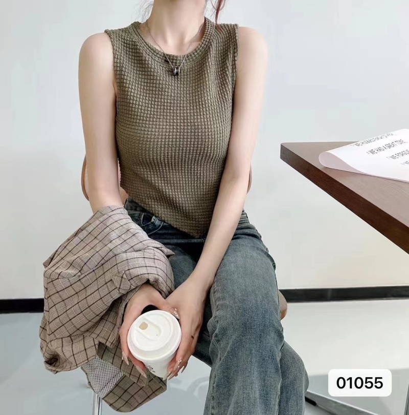 2023年夏季新款吊带背心修身西装打底设计感小众无袖针织上衣潮款