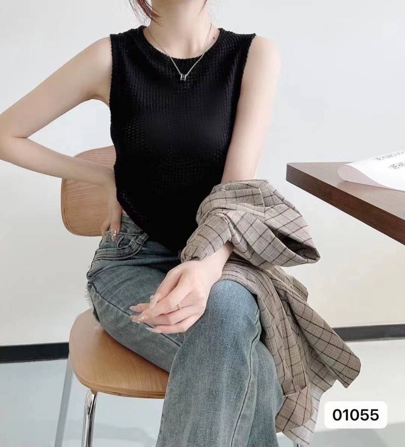 夏季新款针织吊带背心短款上衣镂空无袖设计感衫辣妹性感外穿内搭
