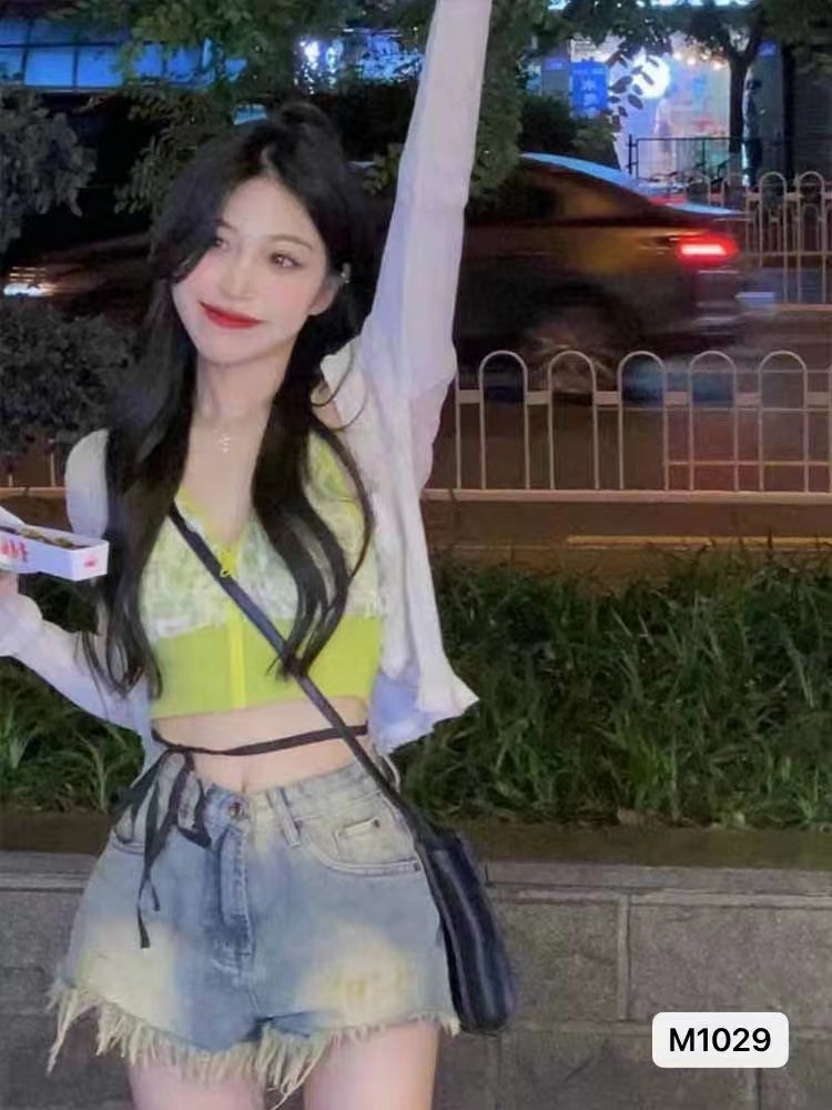 夏季短款纯色法式针织薄款挂脖吊带性感辣妹外穿露背加工定制上衣
