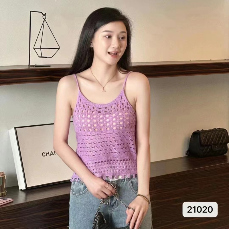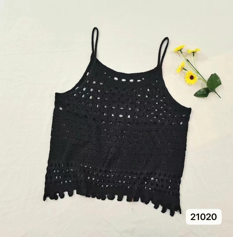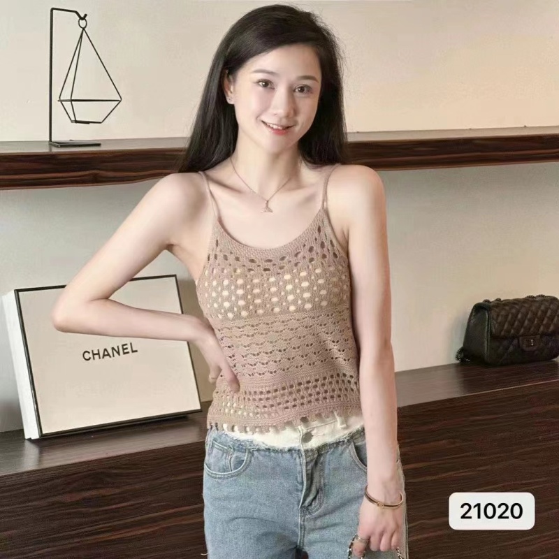 夏季新款针织吊带背心短款上衣镂空无袖设计感衫辣妹性感外穿内搭