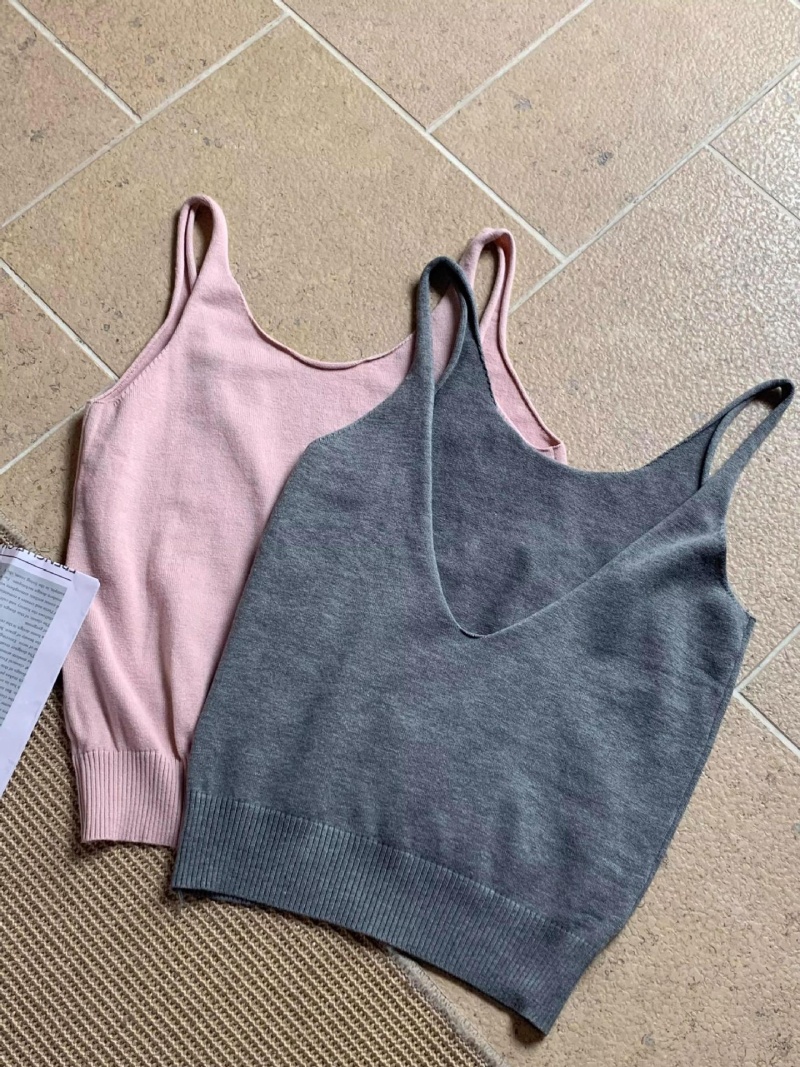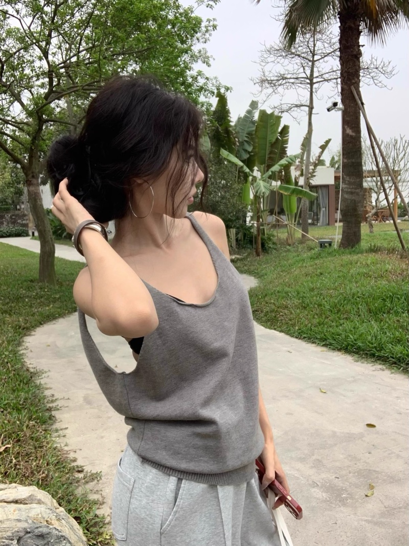 夏季短款纯色法式针织薄款挂脖吊带性感辣妹外穿露背加工定制上衣