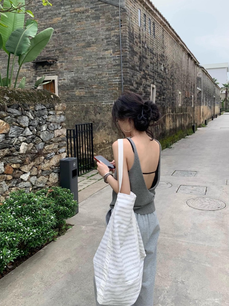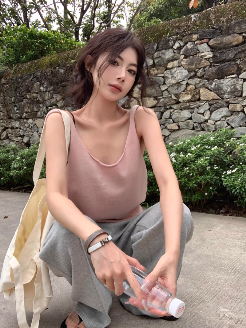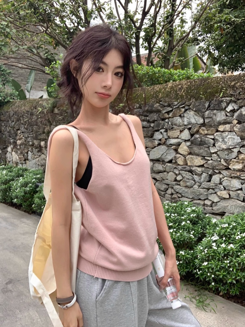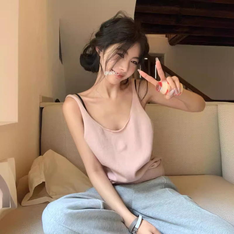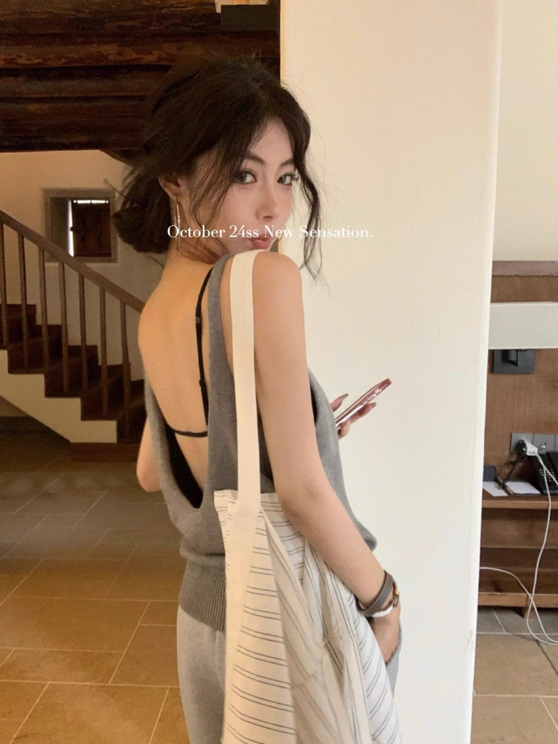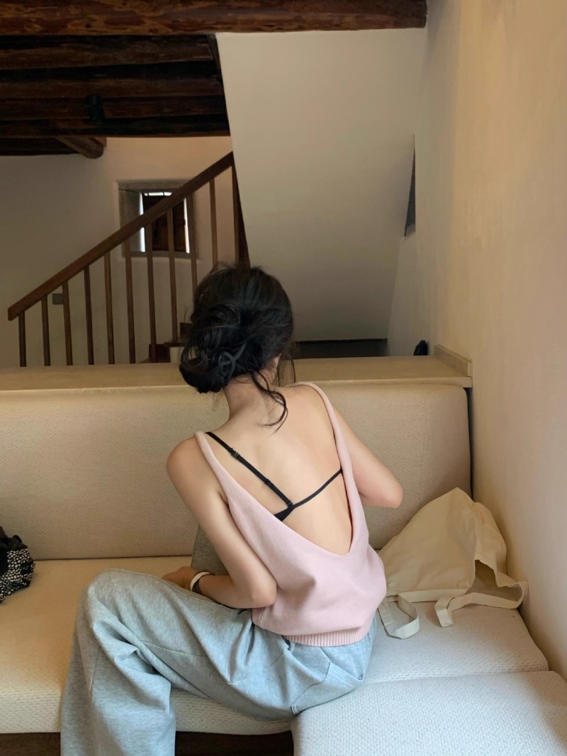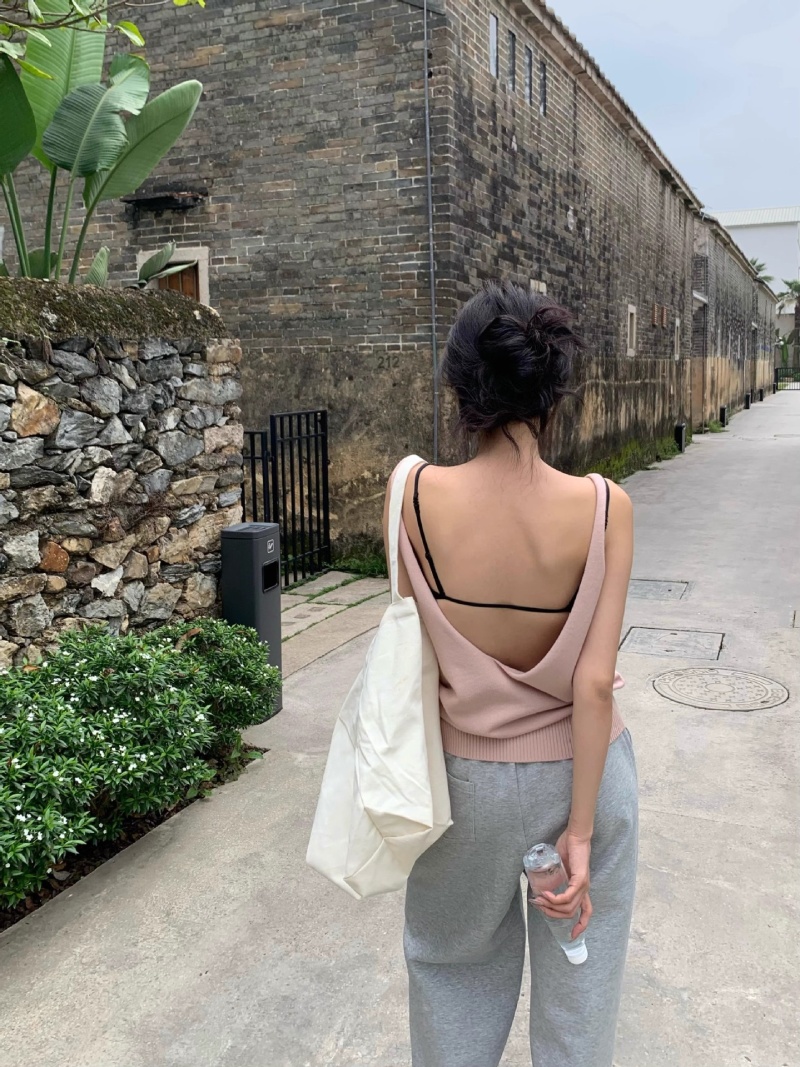 2024性感露背针织吊带背心女夏季宽松打底辣妹休闲无袖上衣外穿