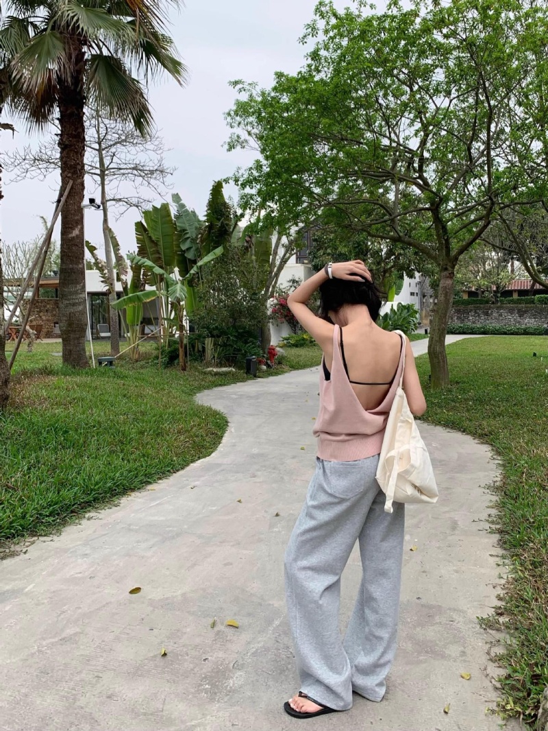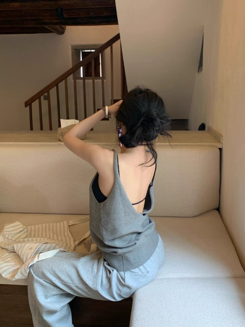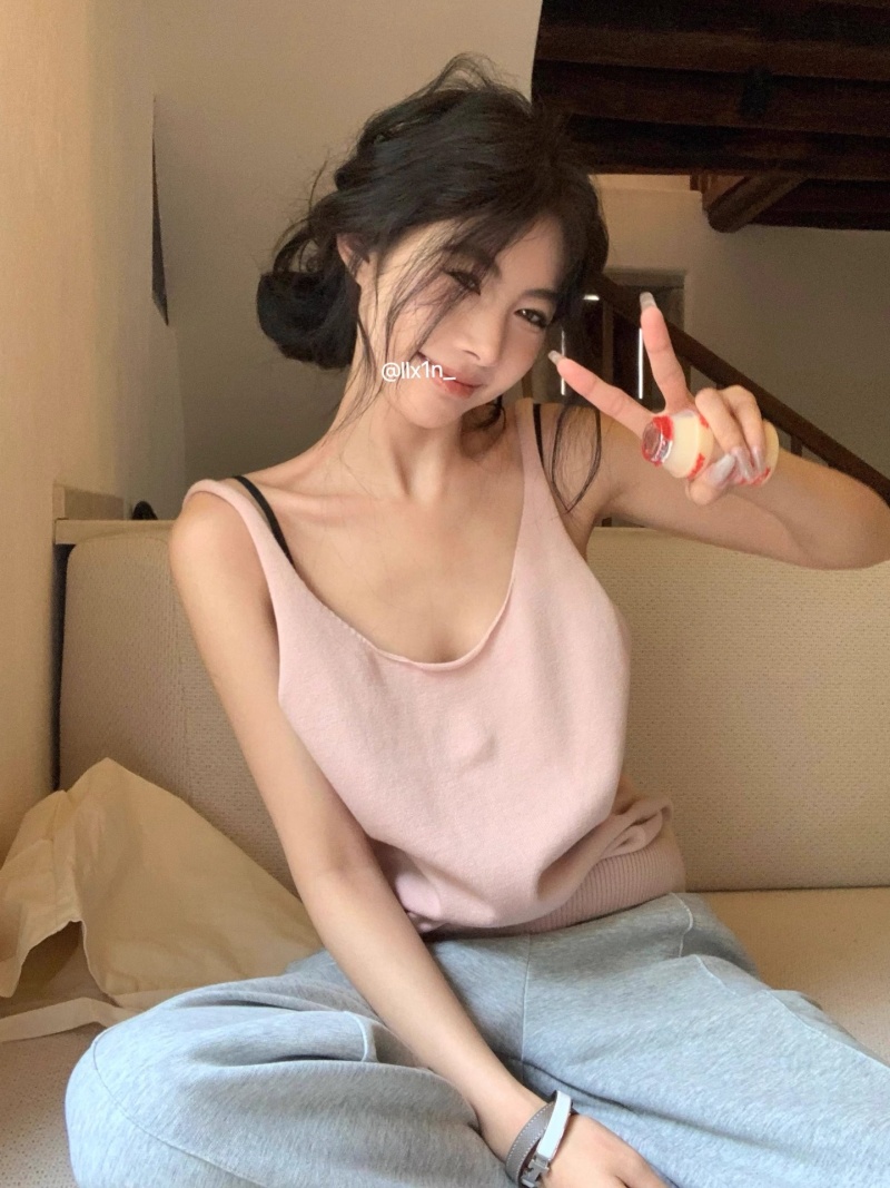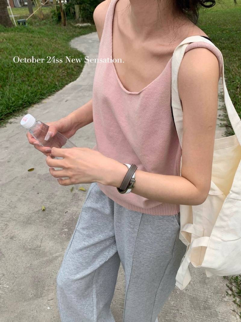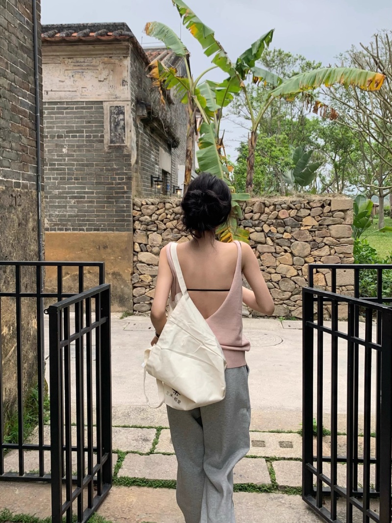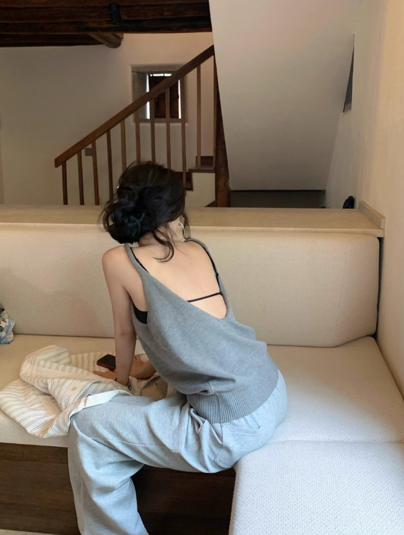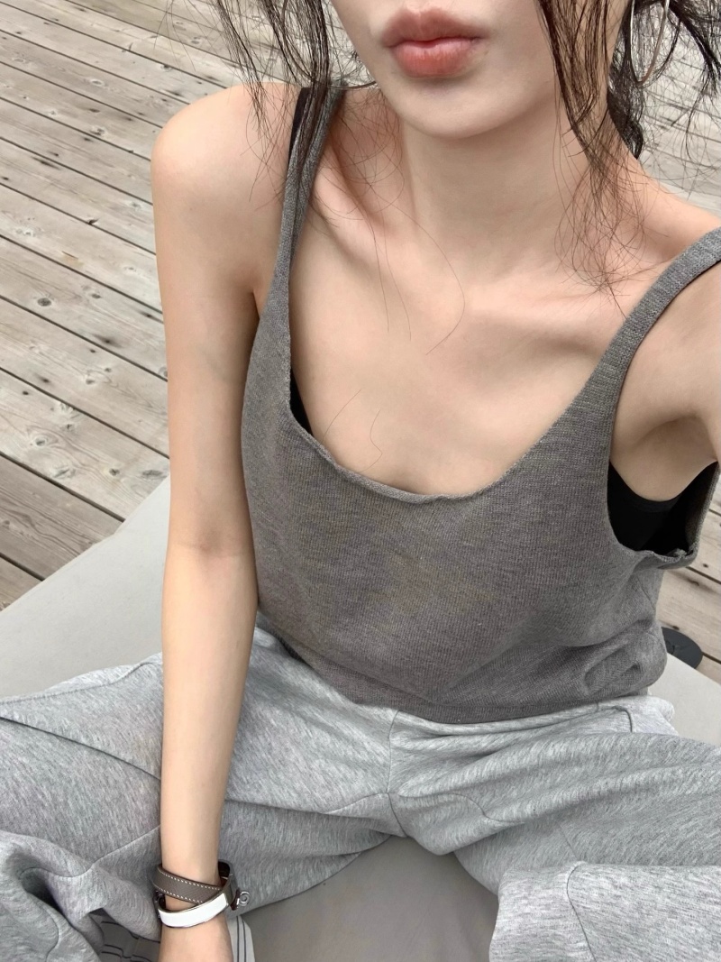 2024性感露背针织吊带背心女夏季宽松打底辣妹休闲无袖上衣外穿
