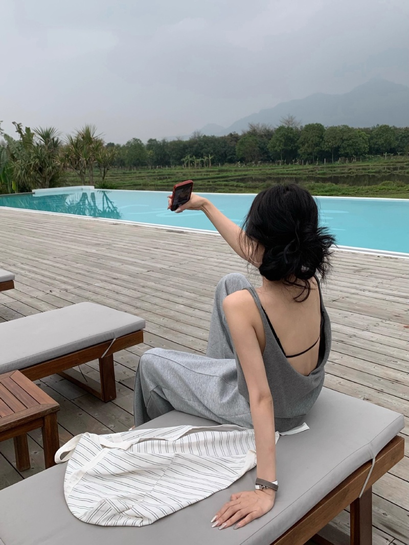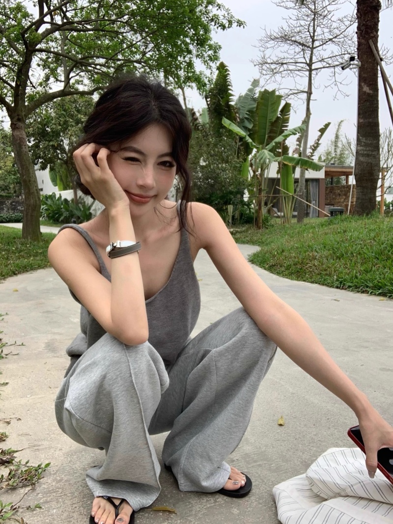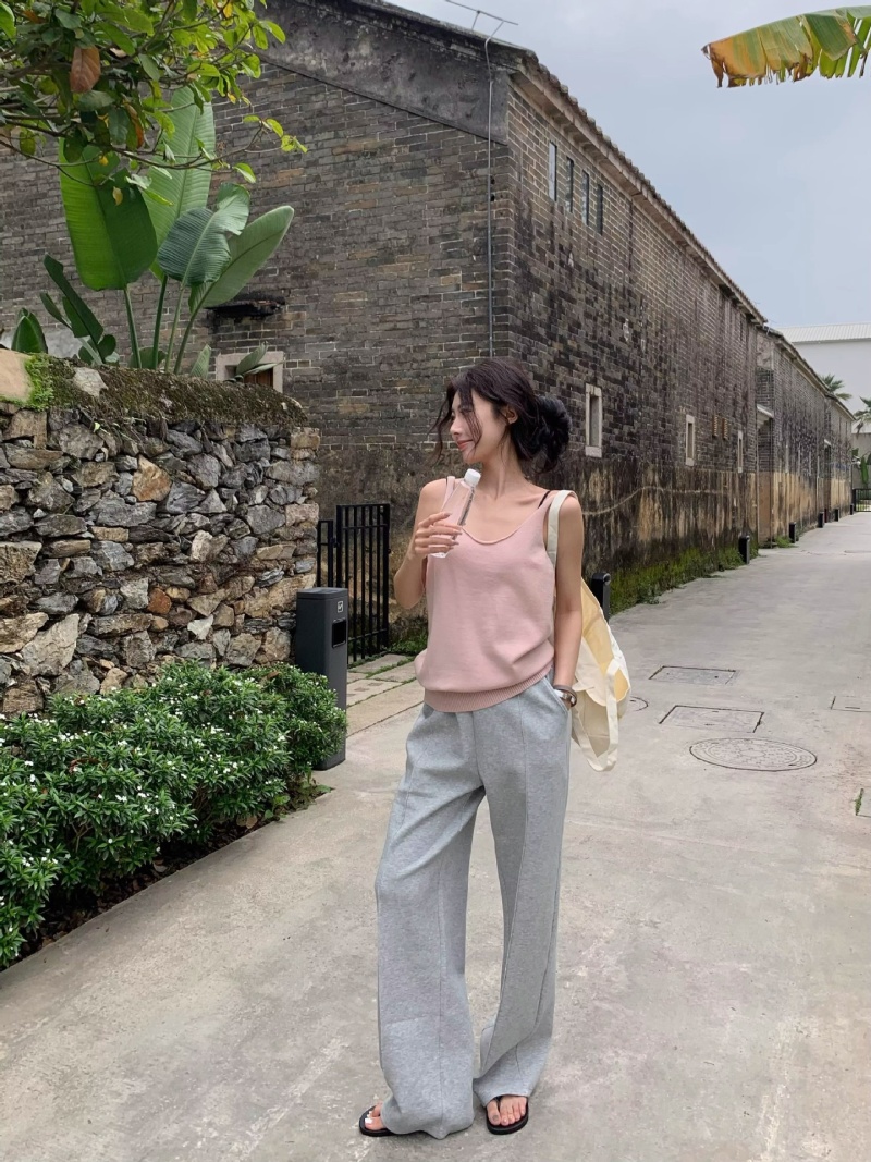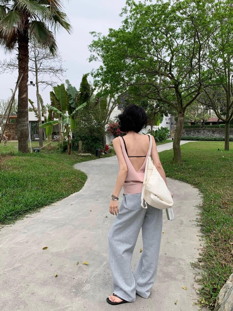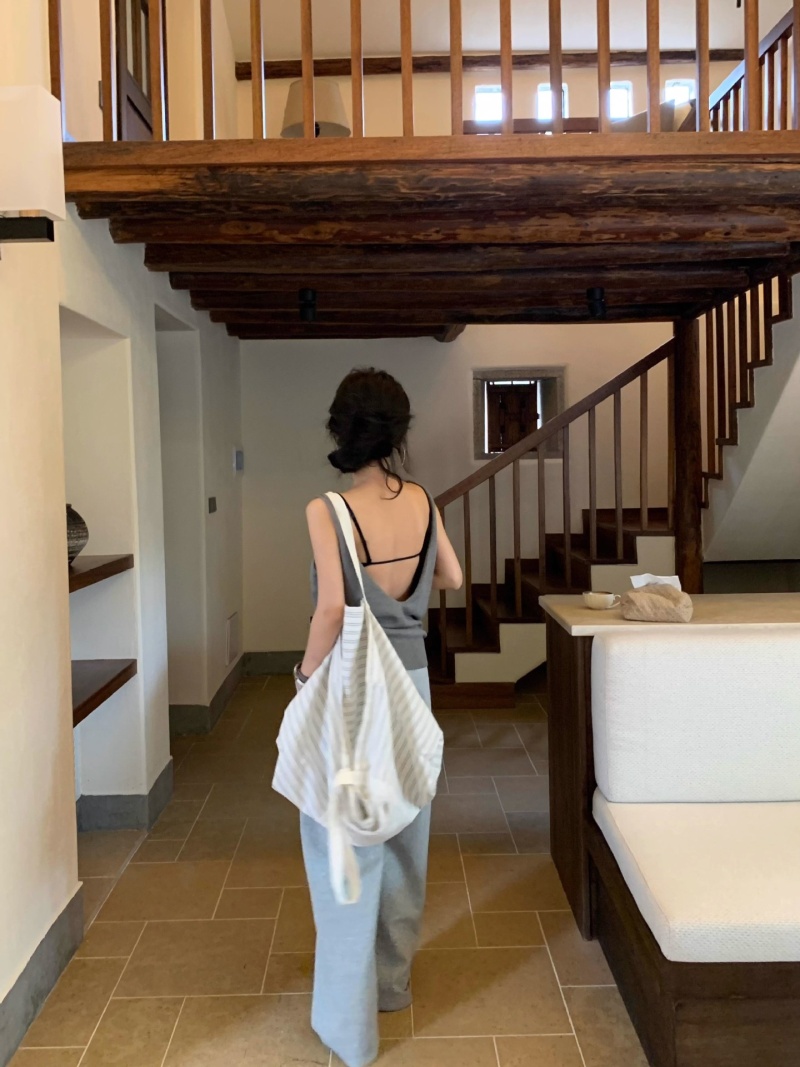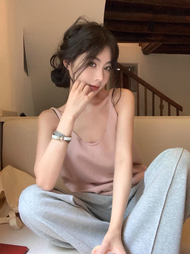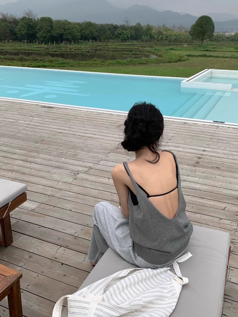 2024性感露背针织吊带背心女夏季宽松打底辣妹休闲无袖上衣外穿