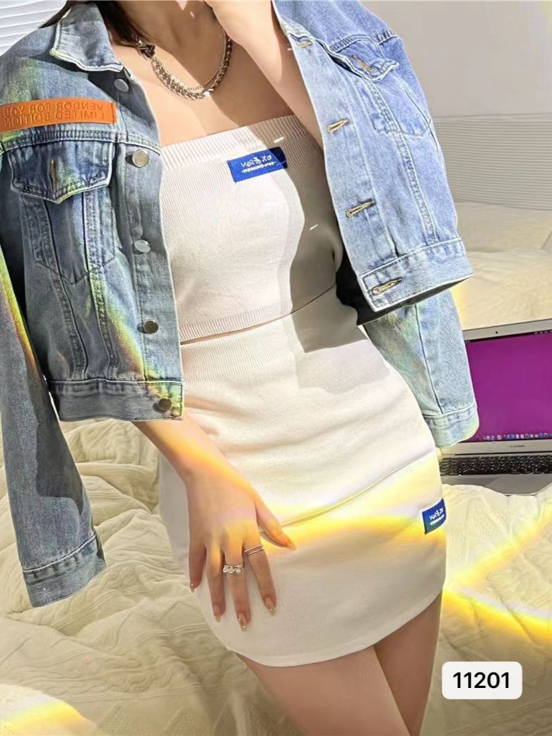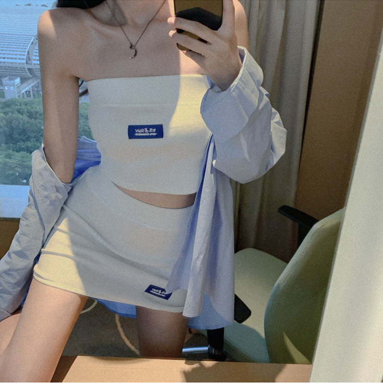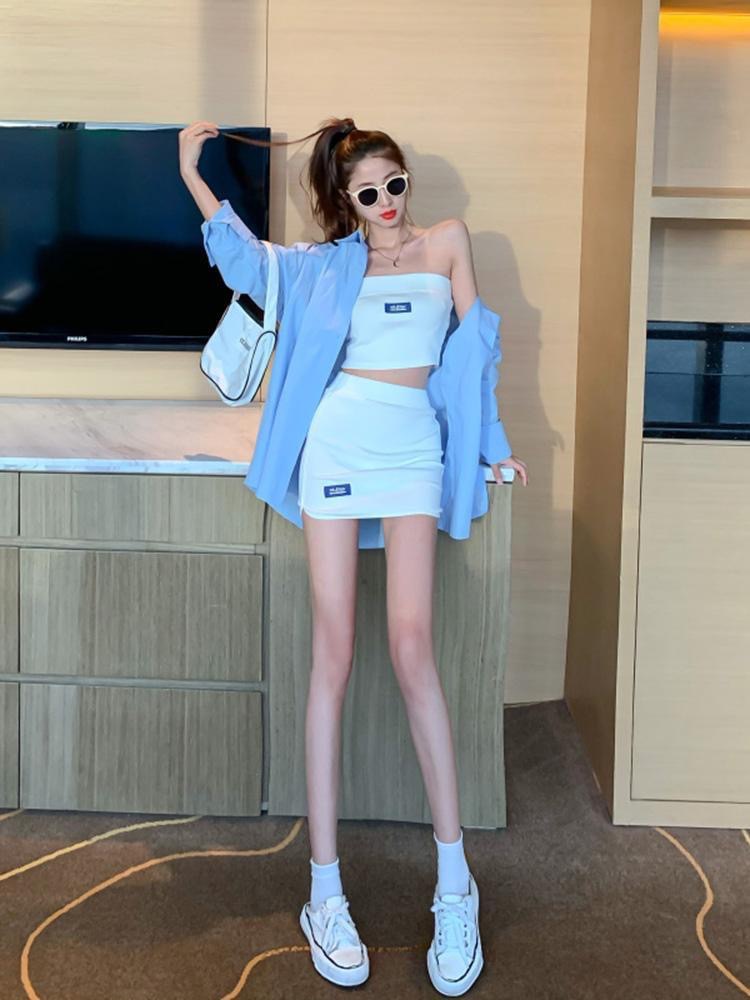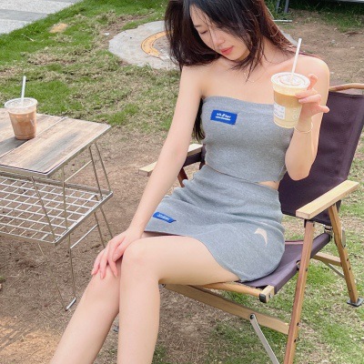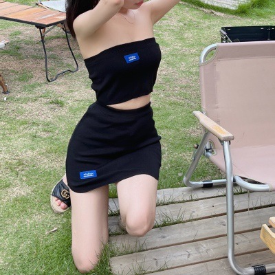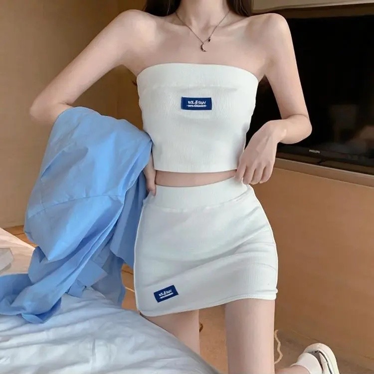 时尚辣妹风夏季时尚套装 ins炸街两件套装针织抹胸+包臀短裙女